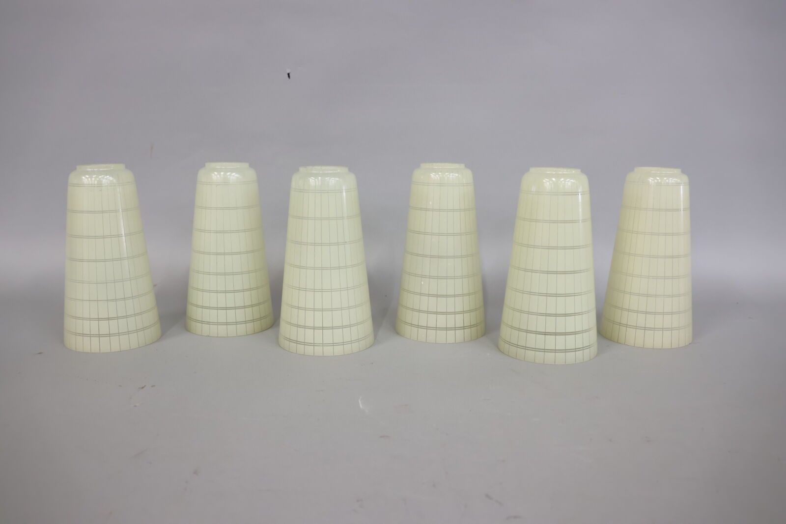 Set of six cylindrical opaline lamp-glasses with check patte…