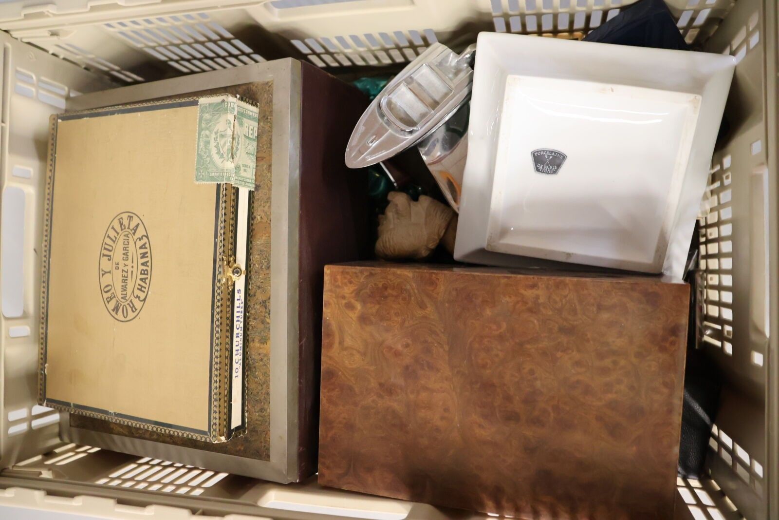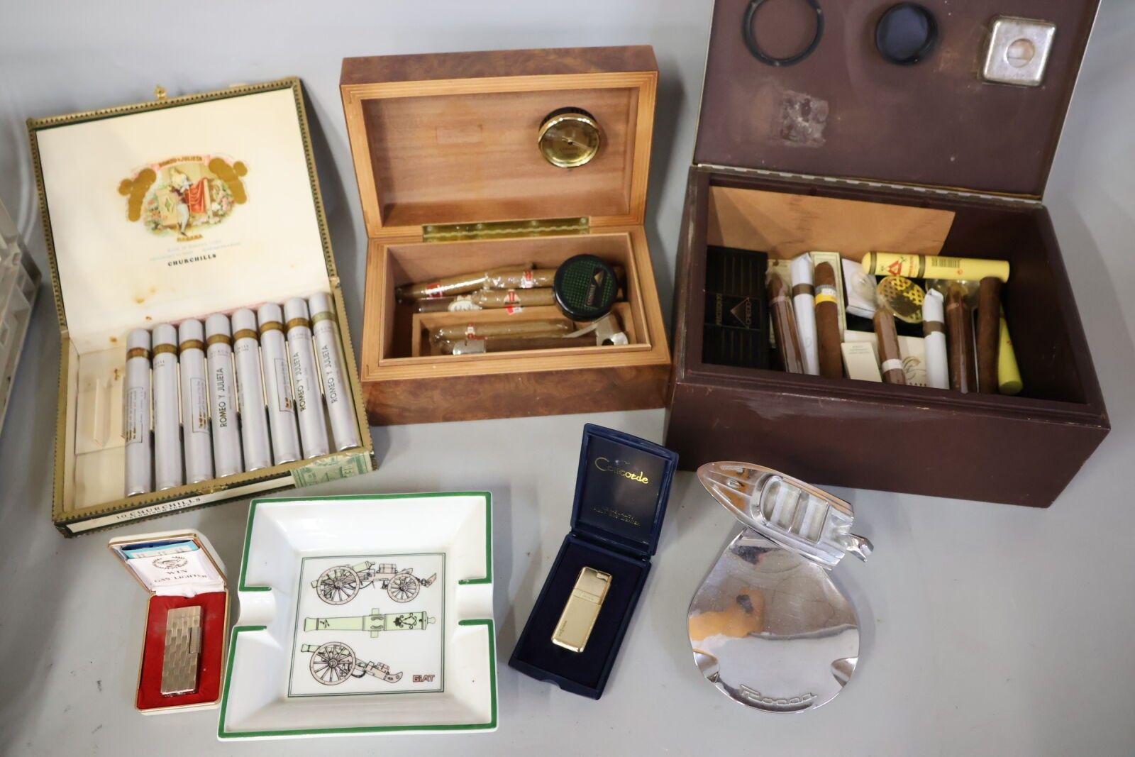 Smoker's set consisting of: - 3 cigar boxes, ashtrays, light…