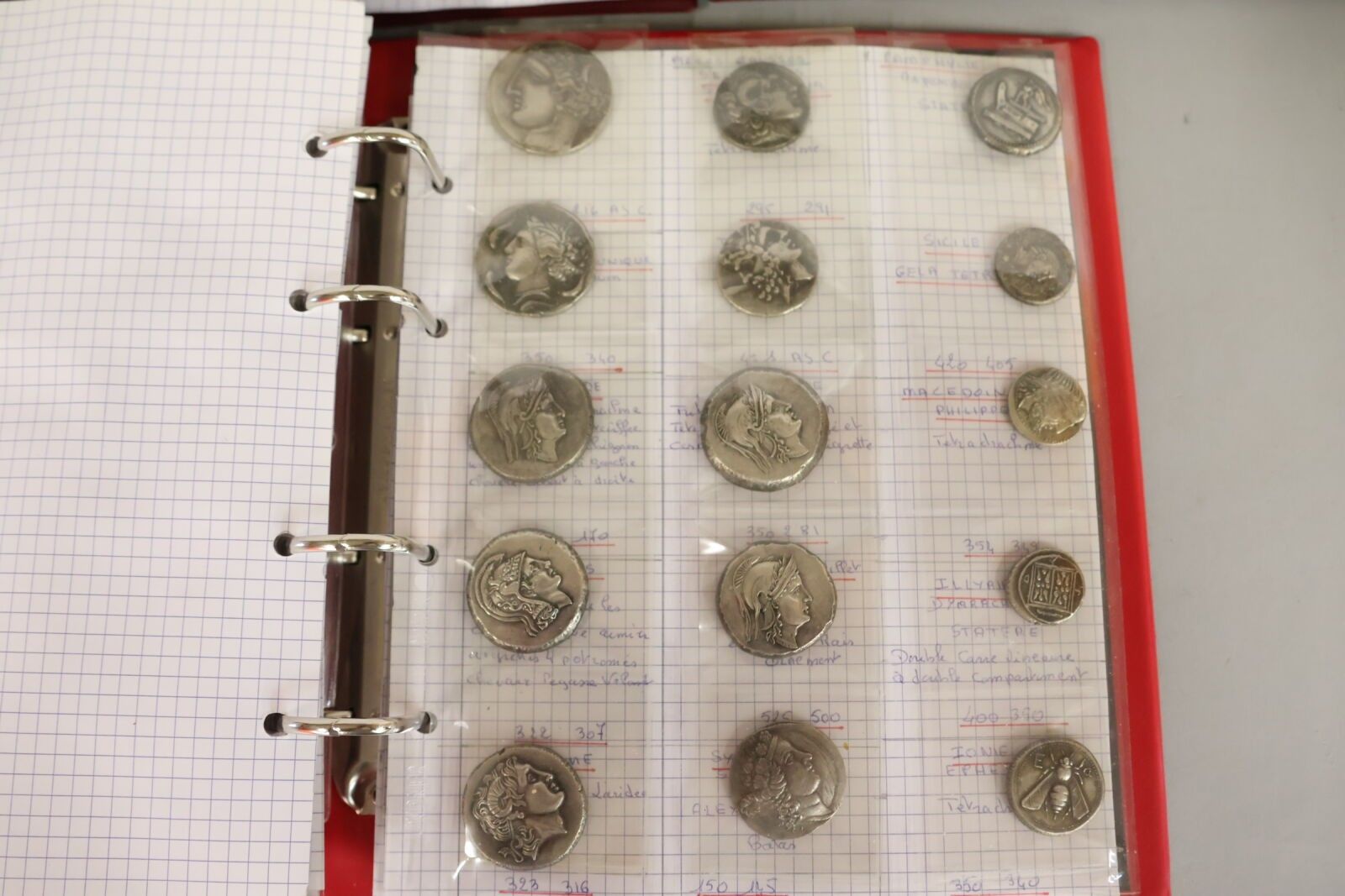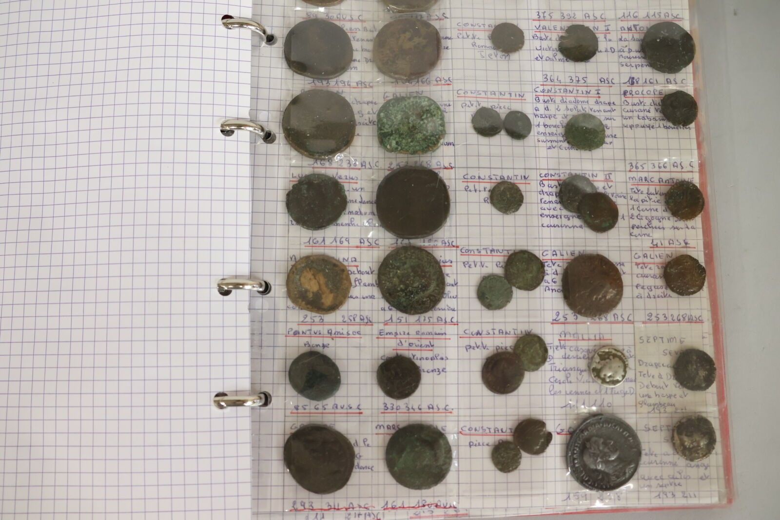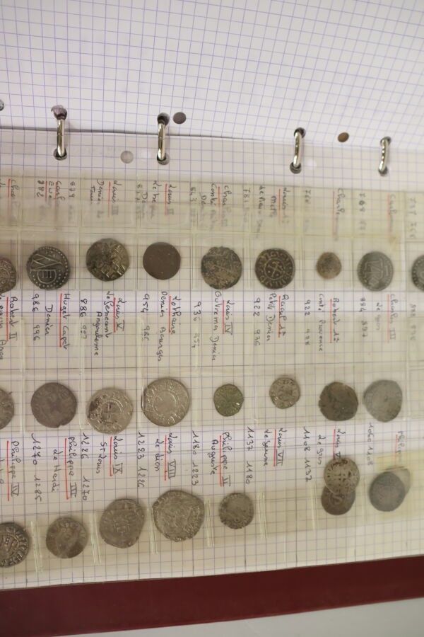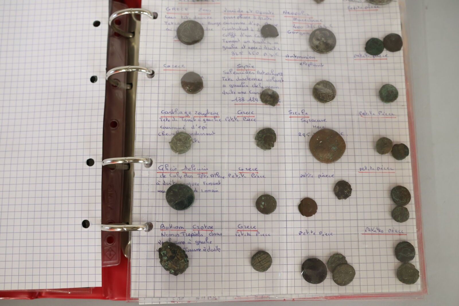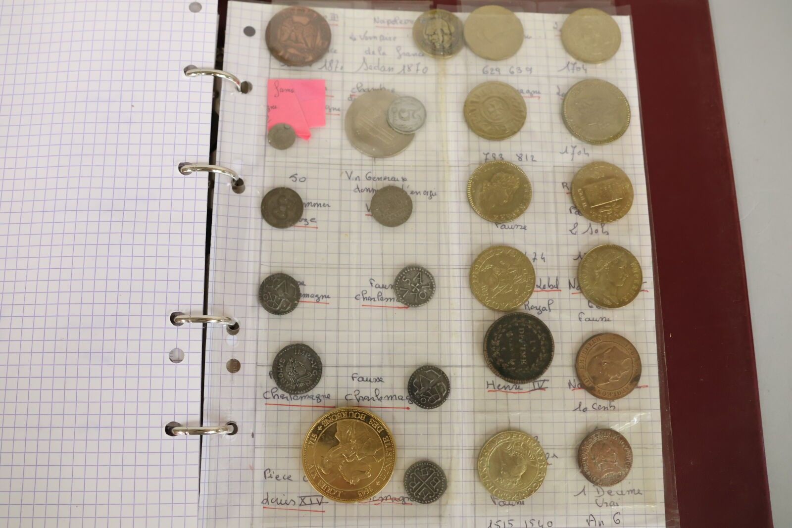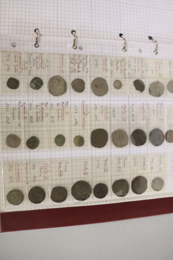 3 Coin cabinets, nice collection of French numismatics, with many copies of medieval coins, Gaul, royal, any period, ancient coins, Roman, flint, Greek. Lot in its juice to sort