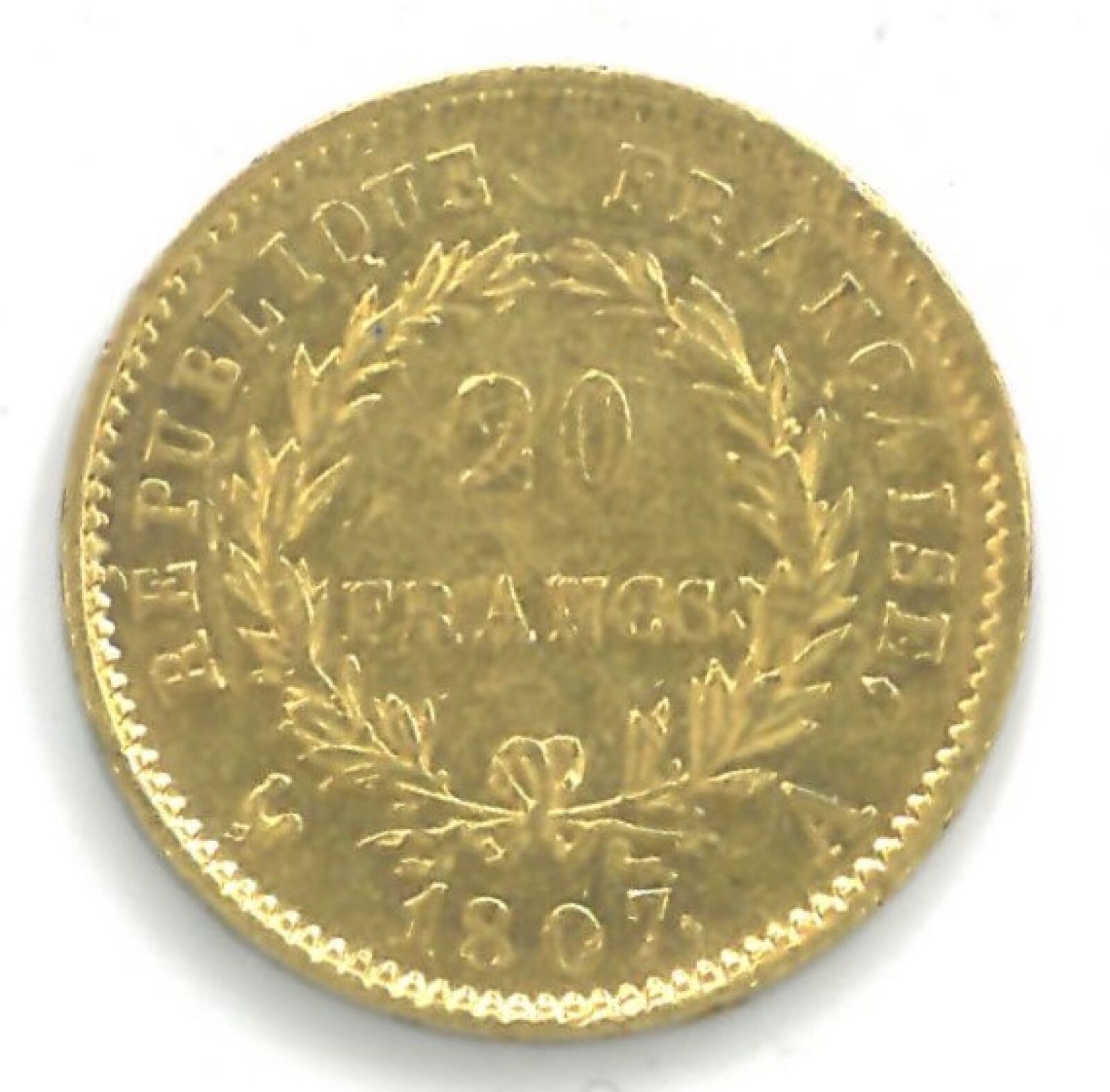 Premium 1 coin of 20 francs gold Napoleon Emperor 1807