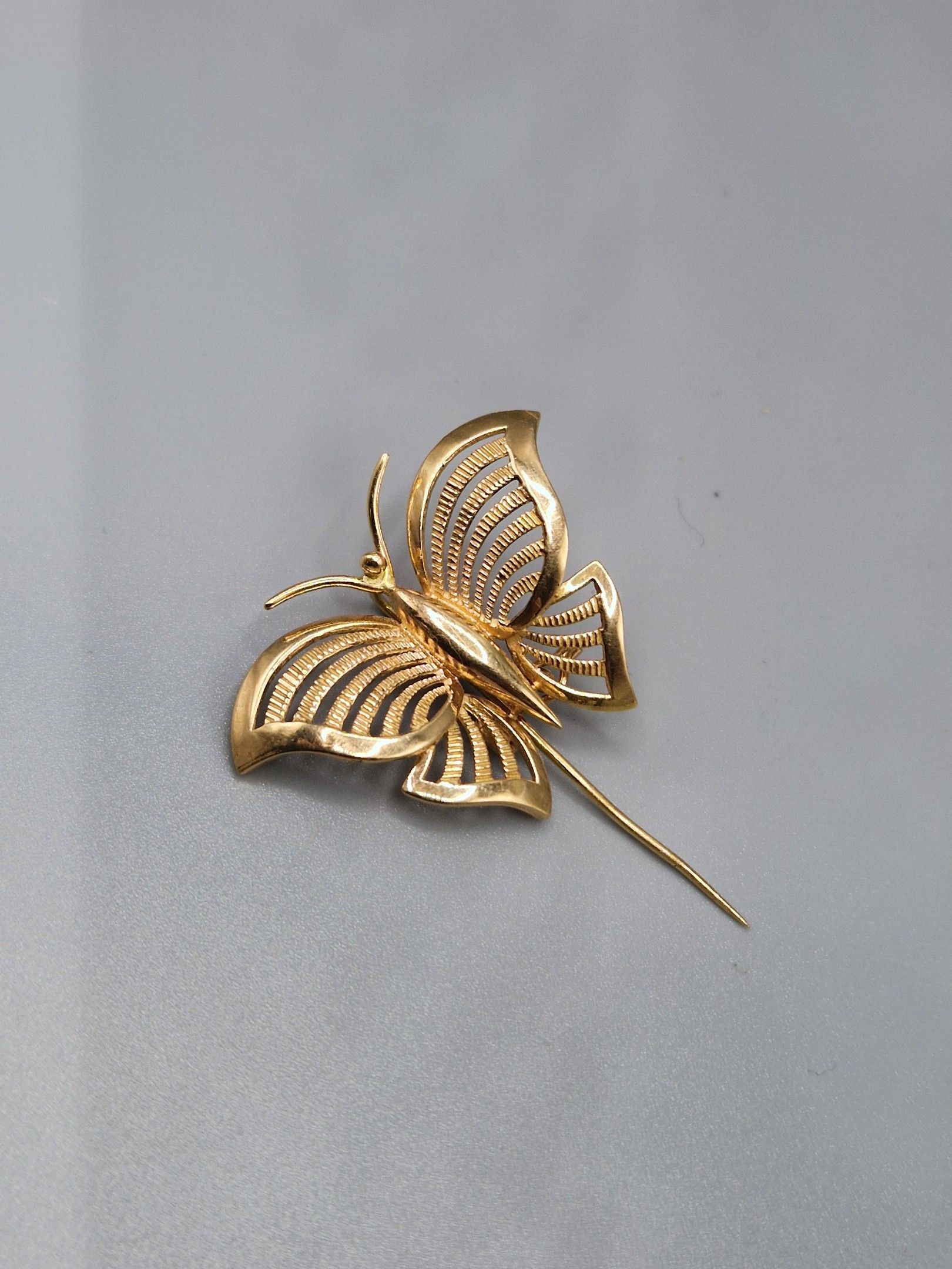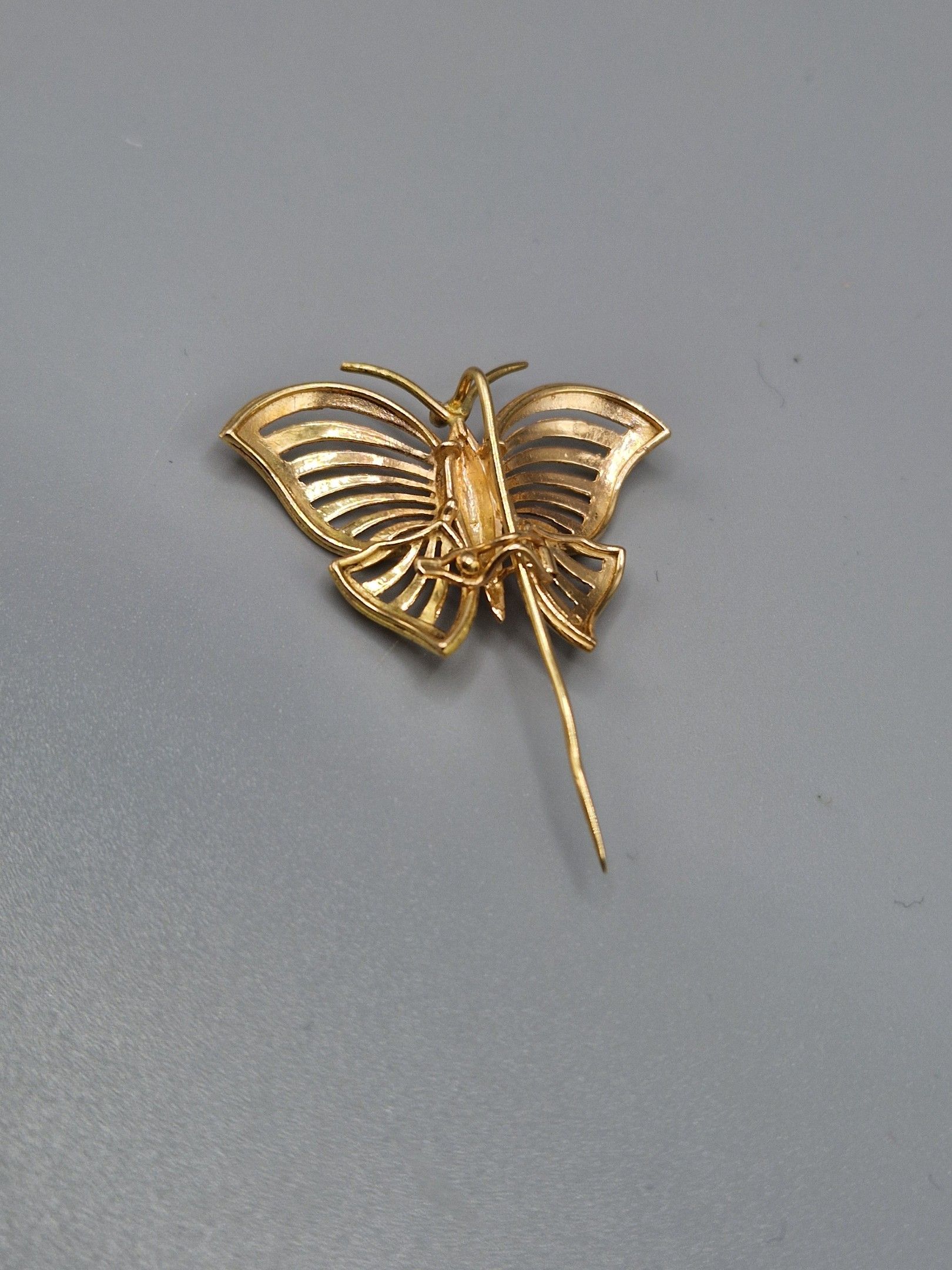 Small openwork butterfly brooch in engraved gold (in ruler) …