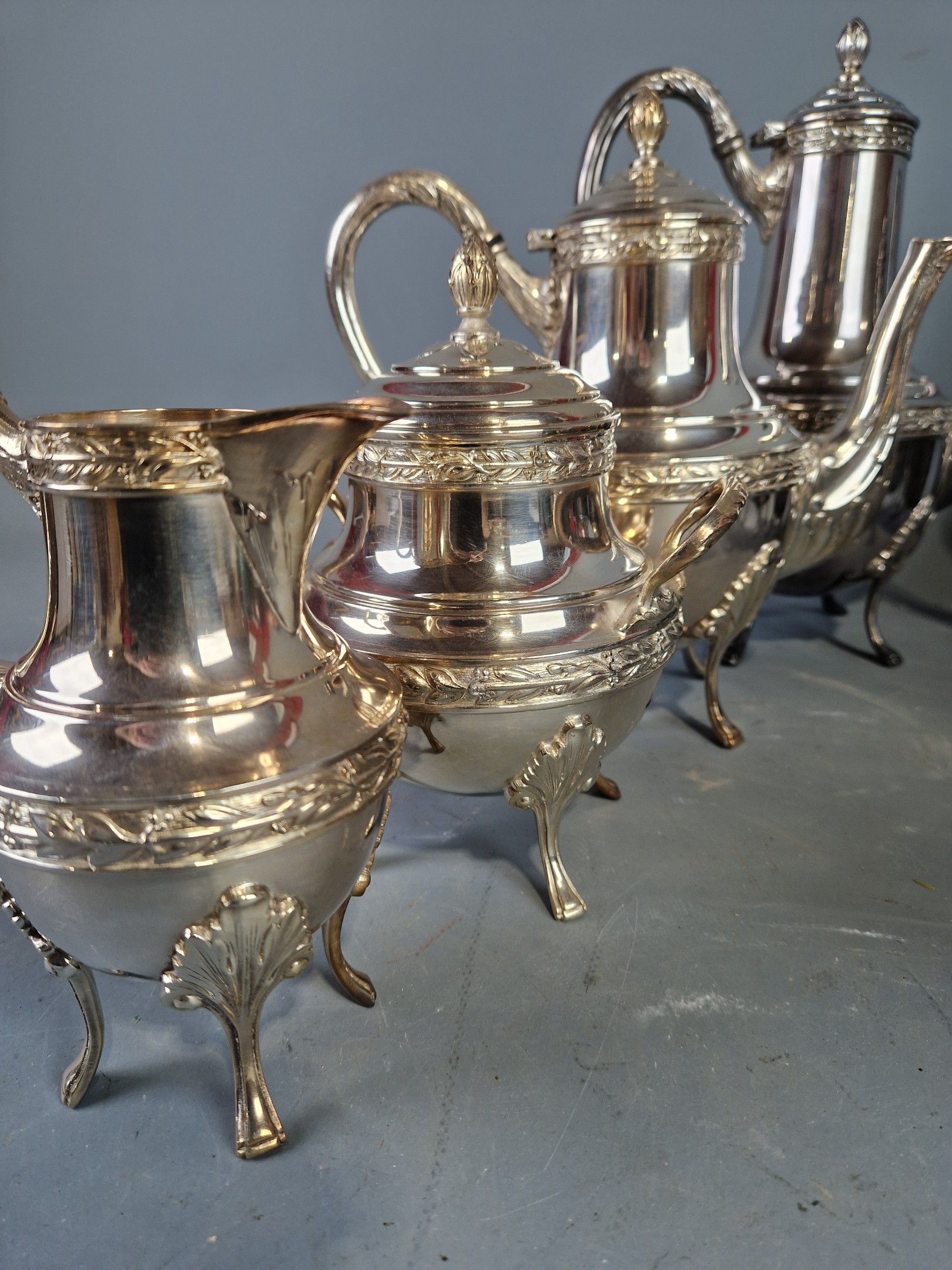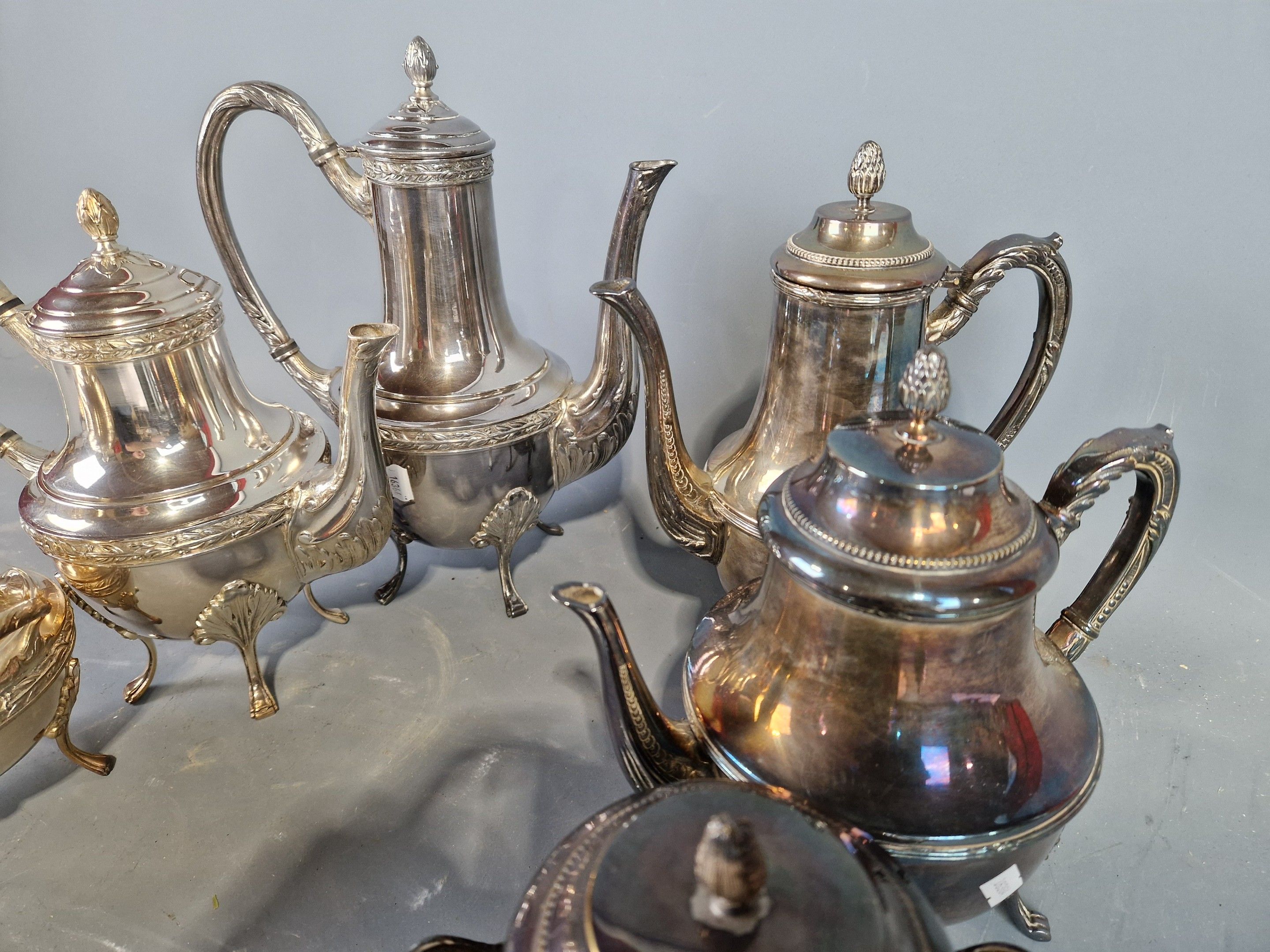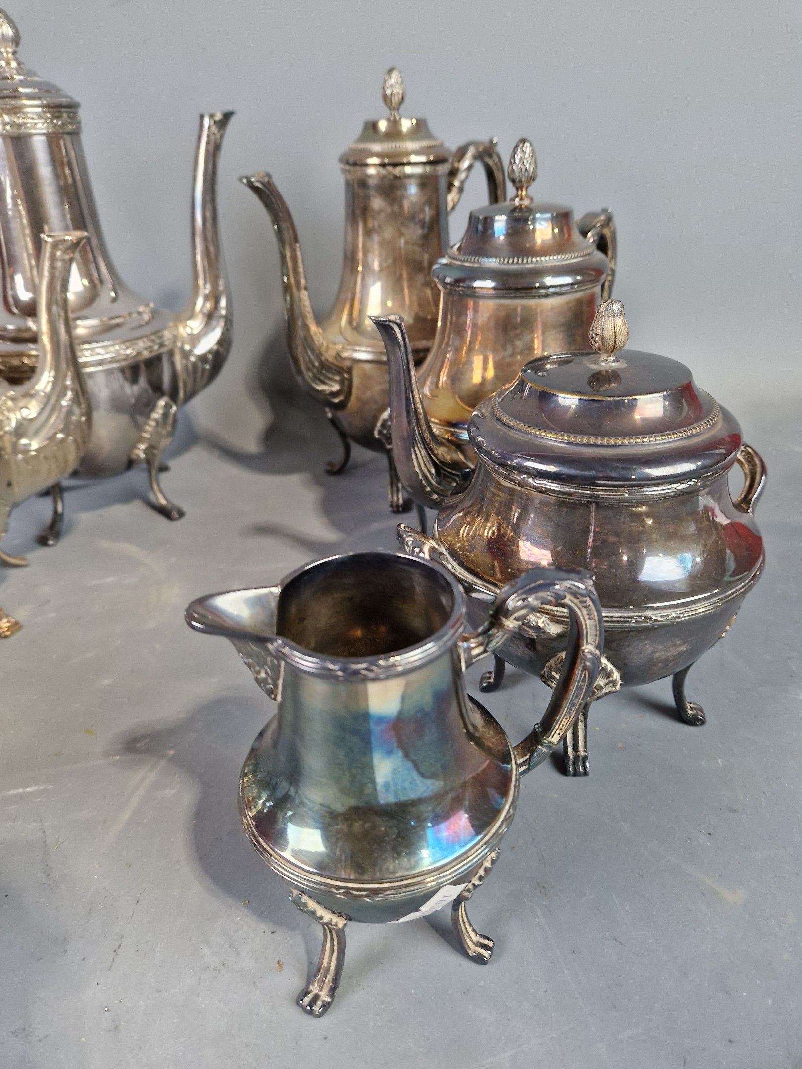 Set of two Louis XVI style silver-plated tea-coffees, each c…