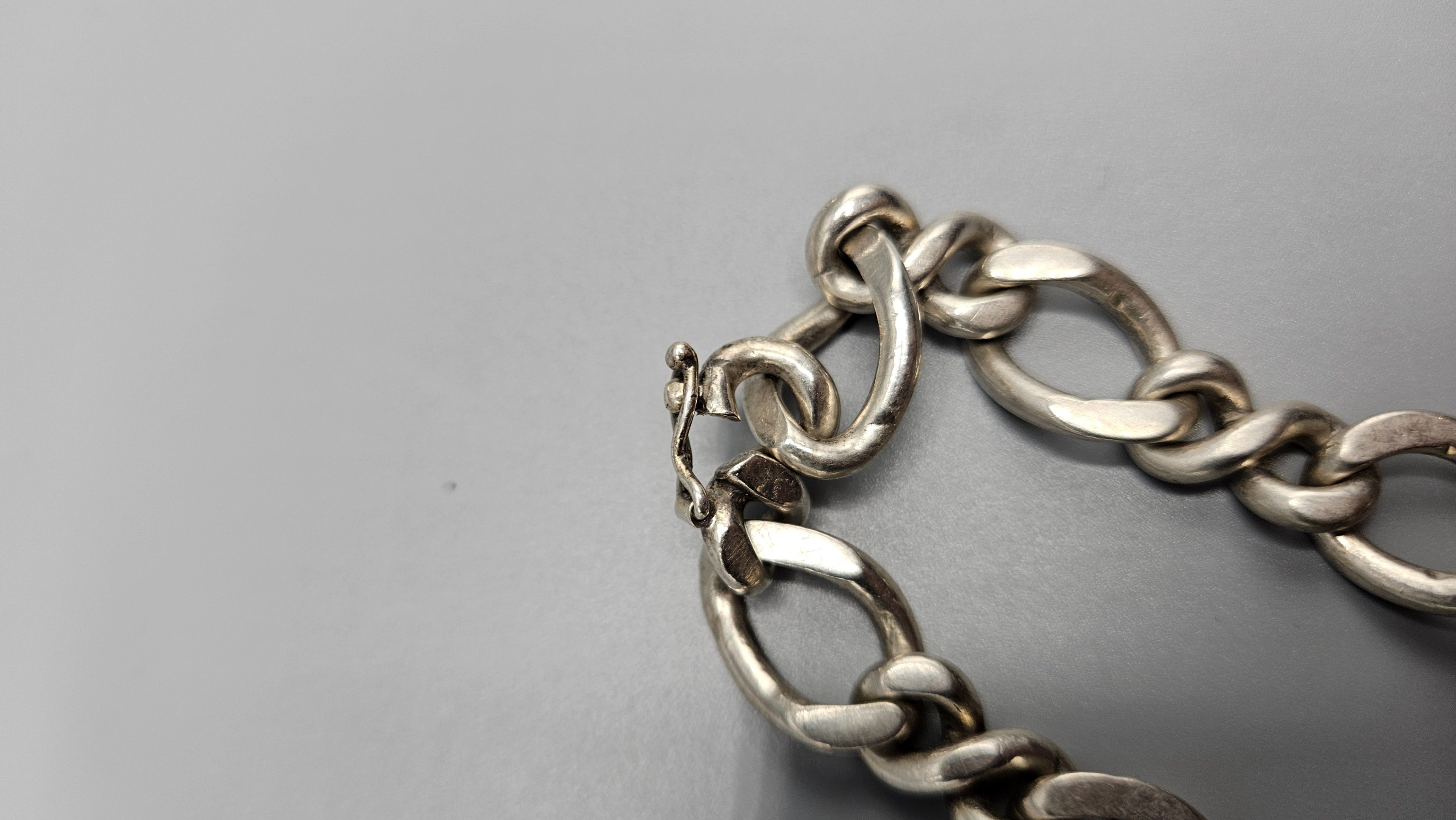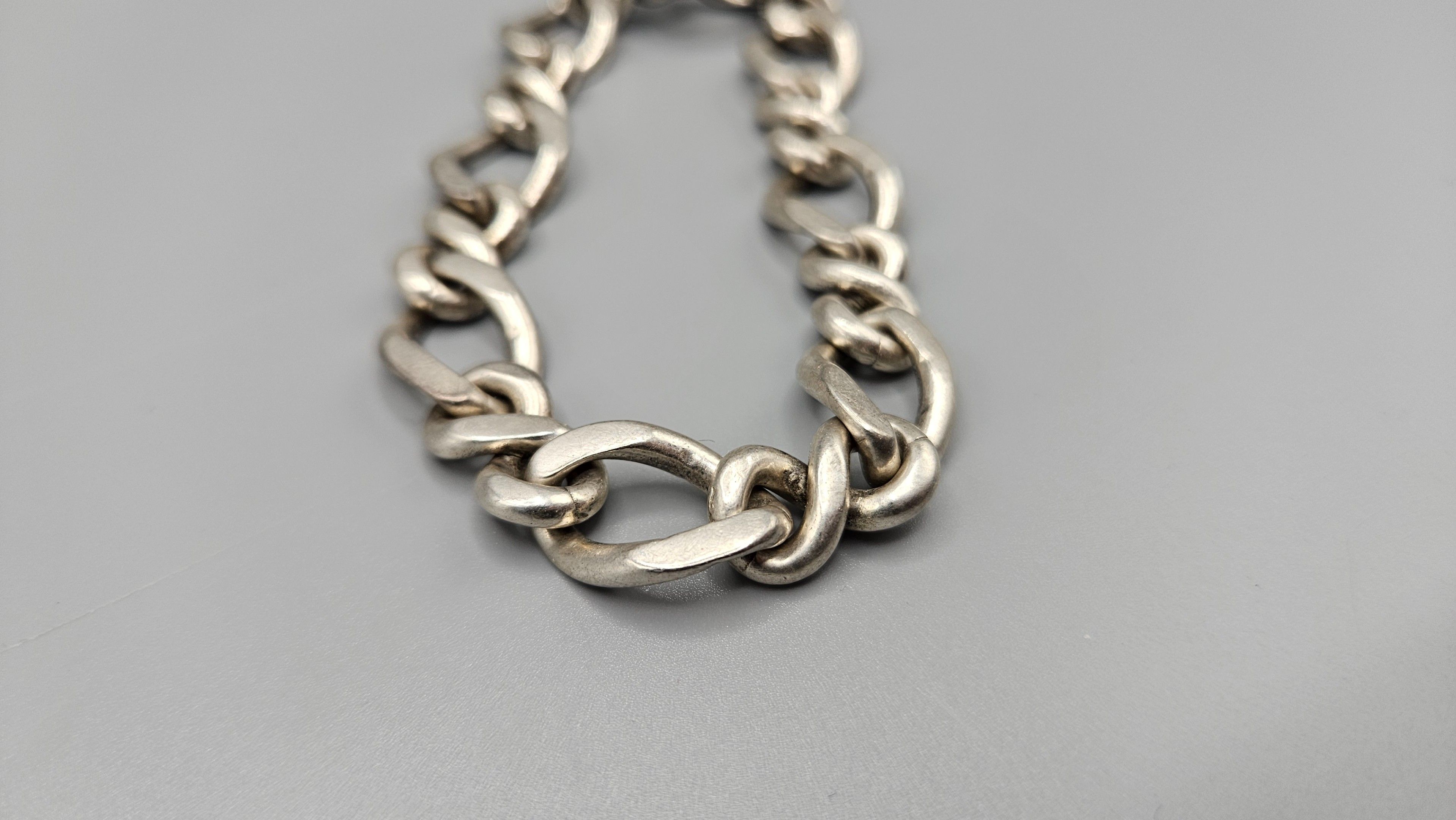 Gourmette bracelet with flattened links in silver. Length: 21.5 cm