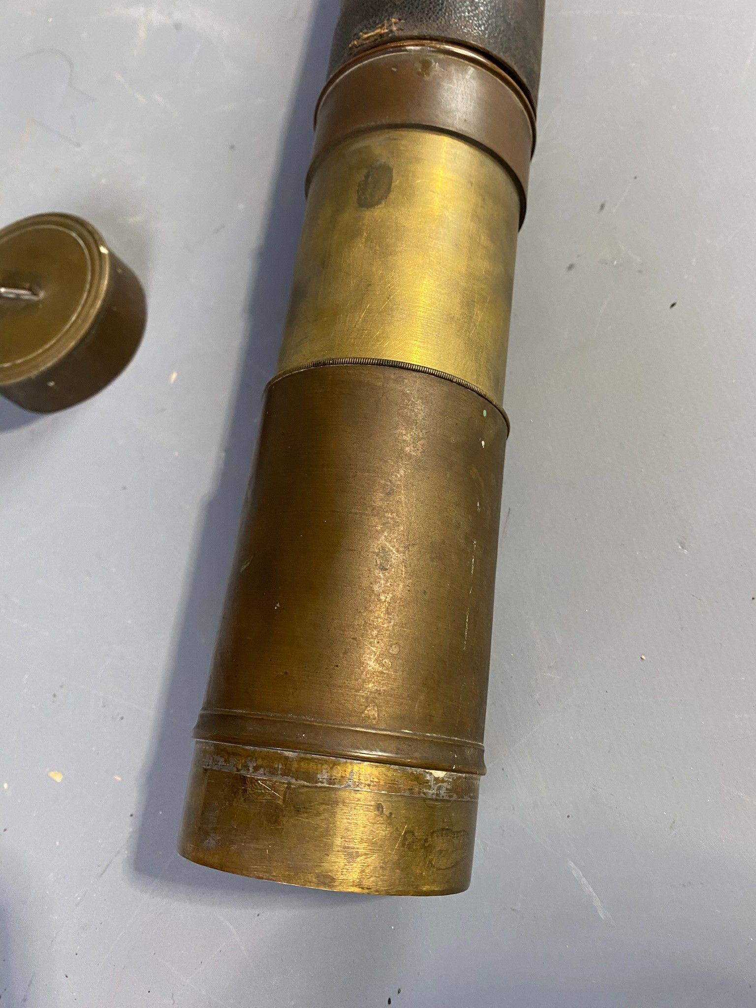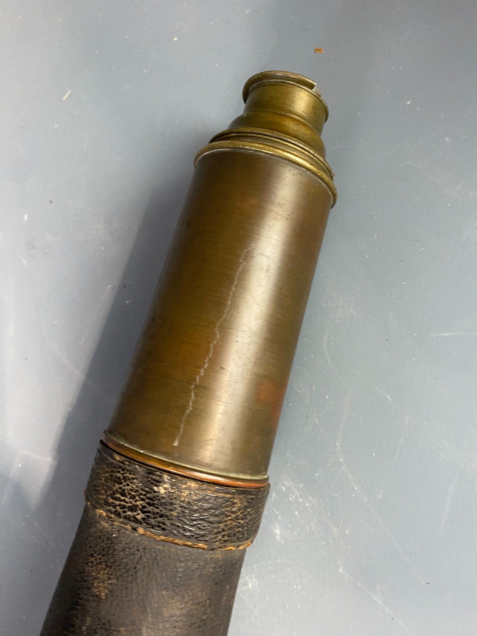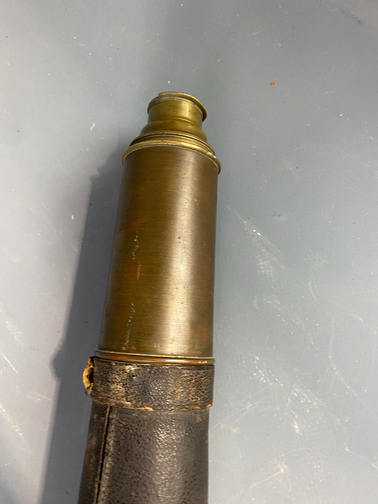 Spyglass. Worn and missing leather casing.