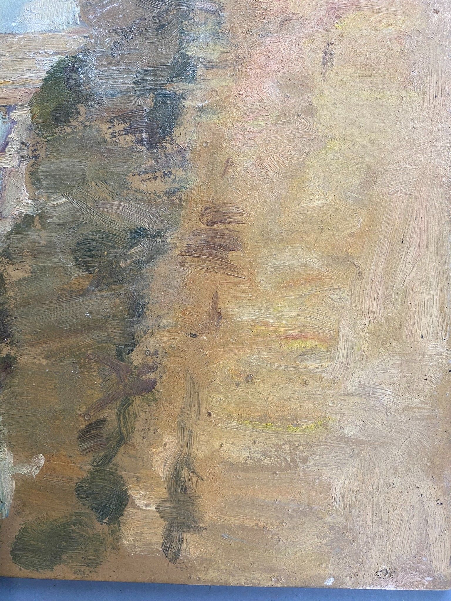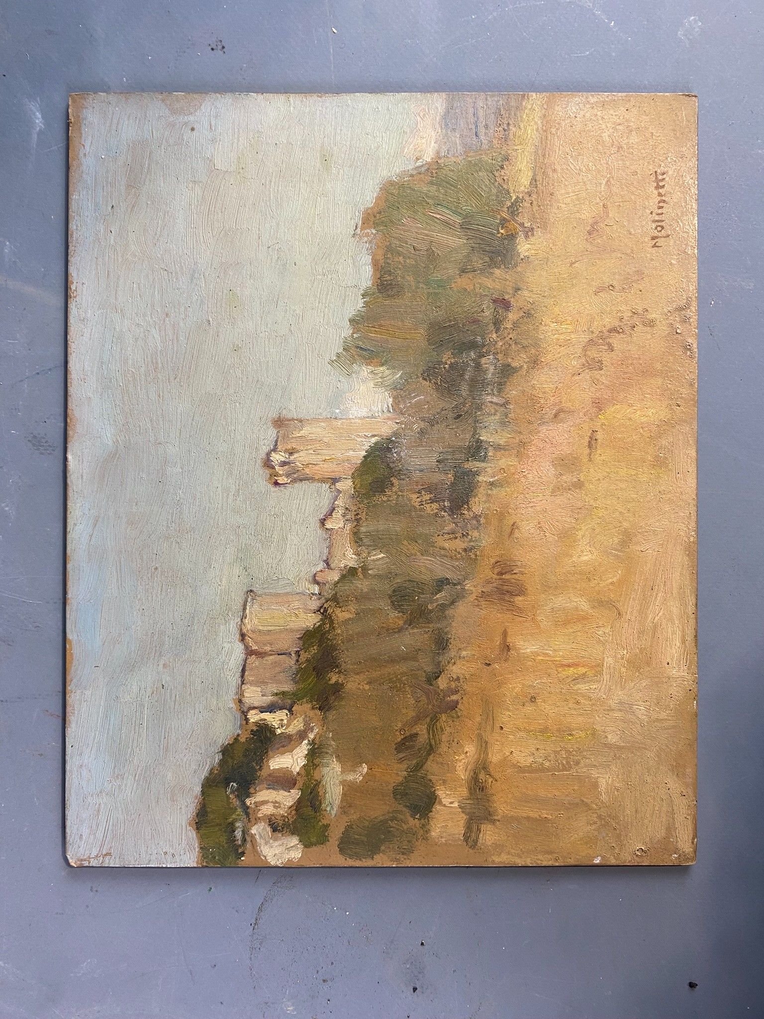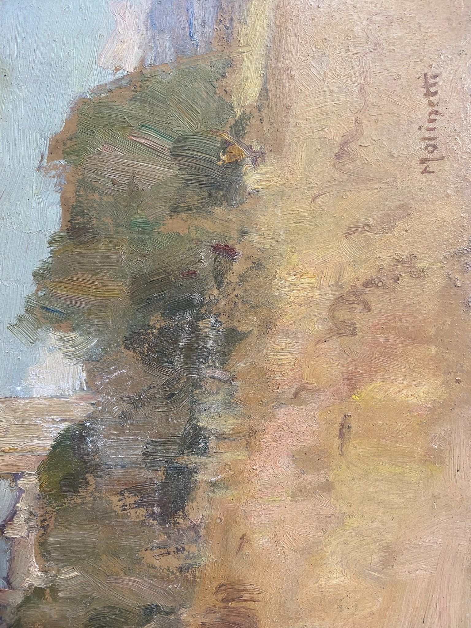 Charles MOLINETTI: "View of the ramparts, Villeneuve lès Avignon (?)". Tempera on board, SBD, 22 x 26.5 cm. Workshop stamp