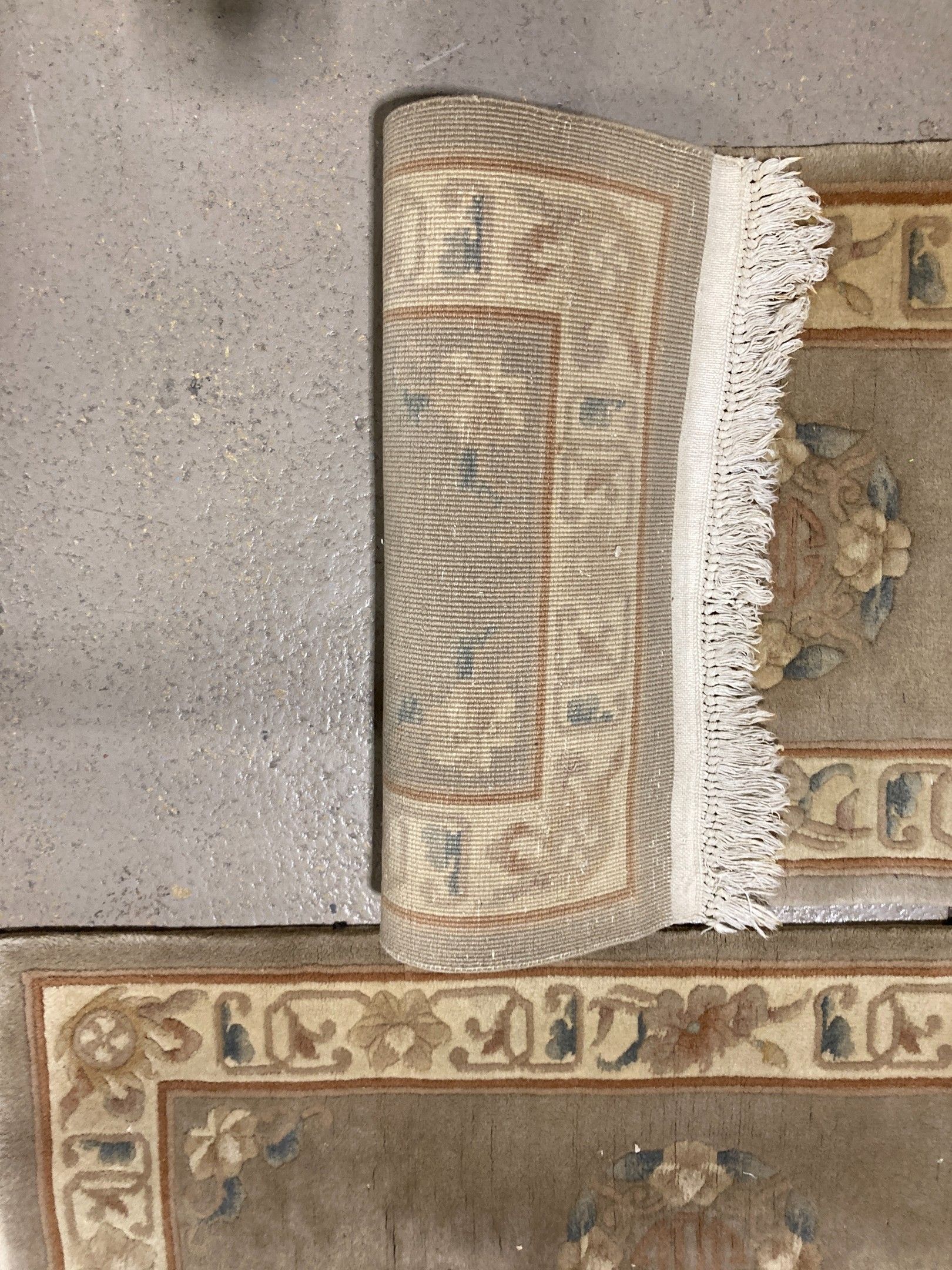Pair of Chinese carpets with a light grey background decorat…