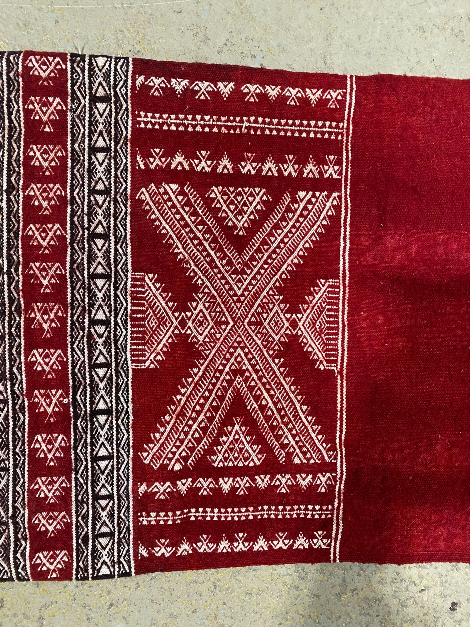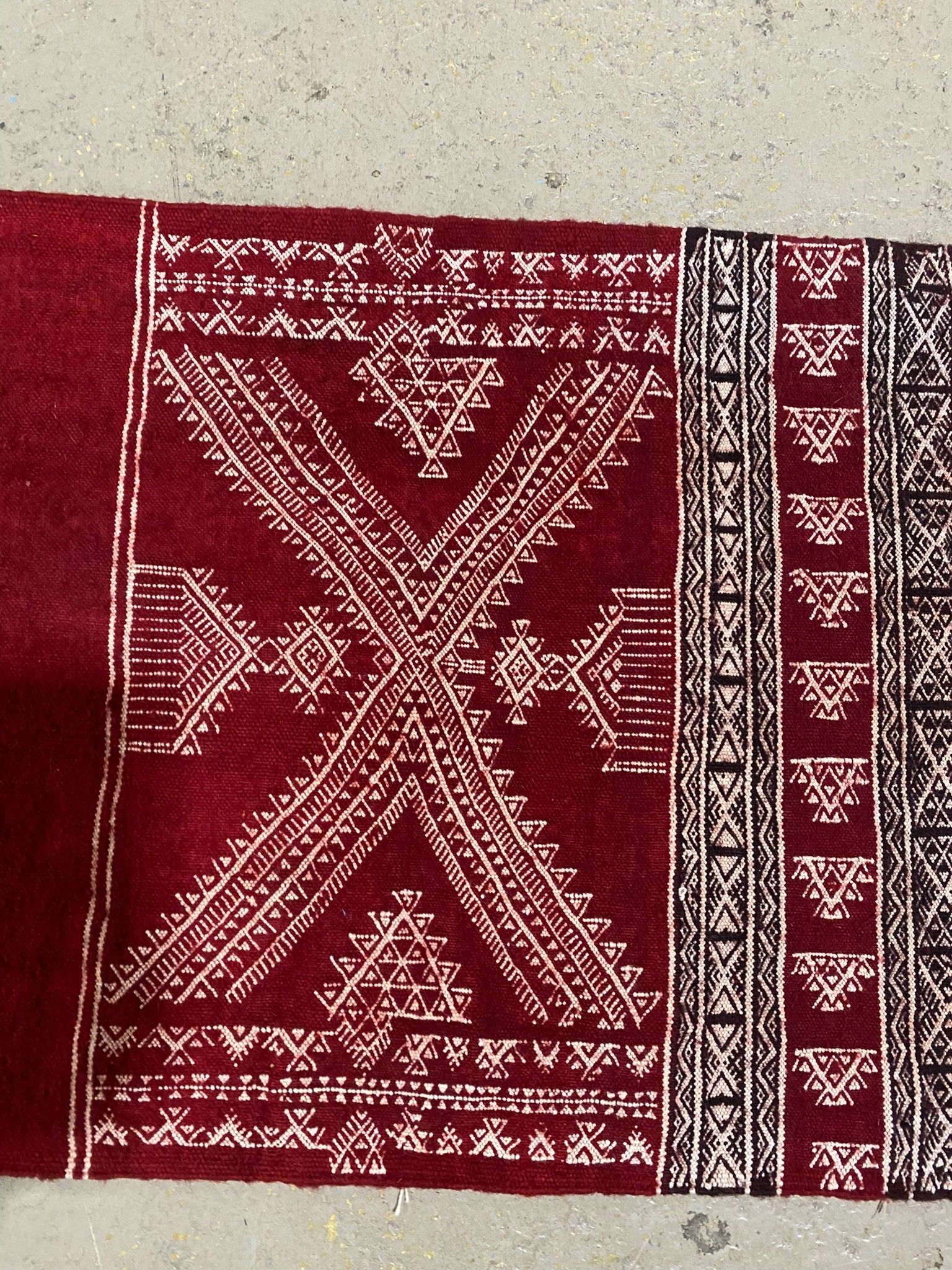 North African belt with fine Kilim weave in wool and cotton with geometric decoration on the ends. 190 x 38 cm