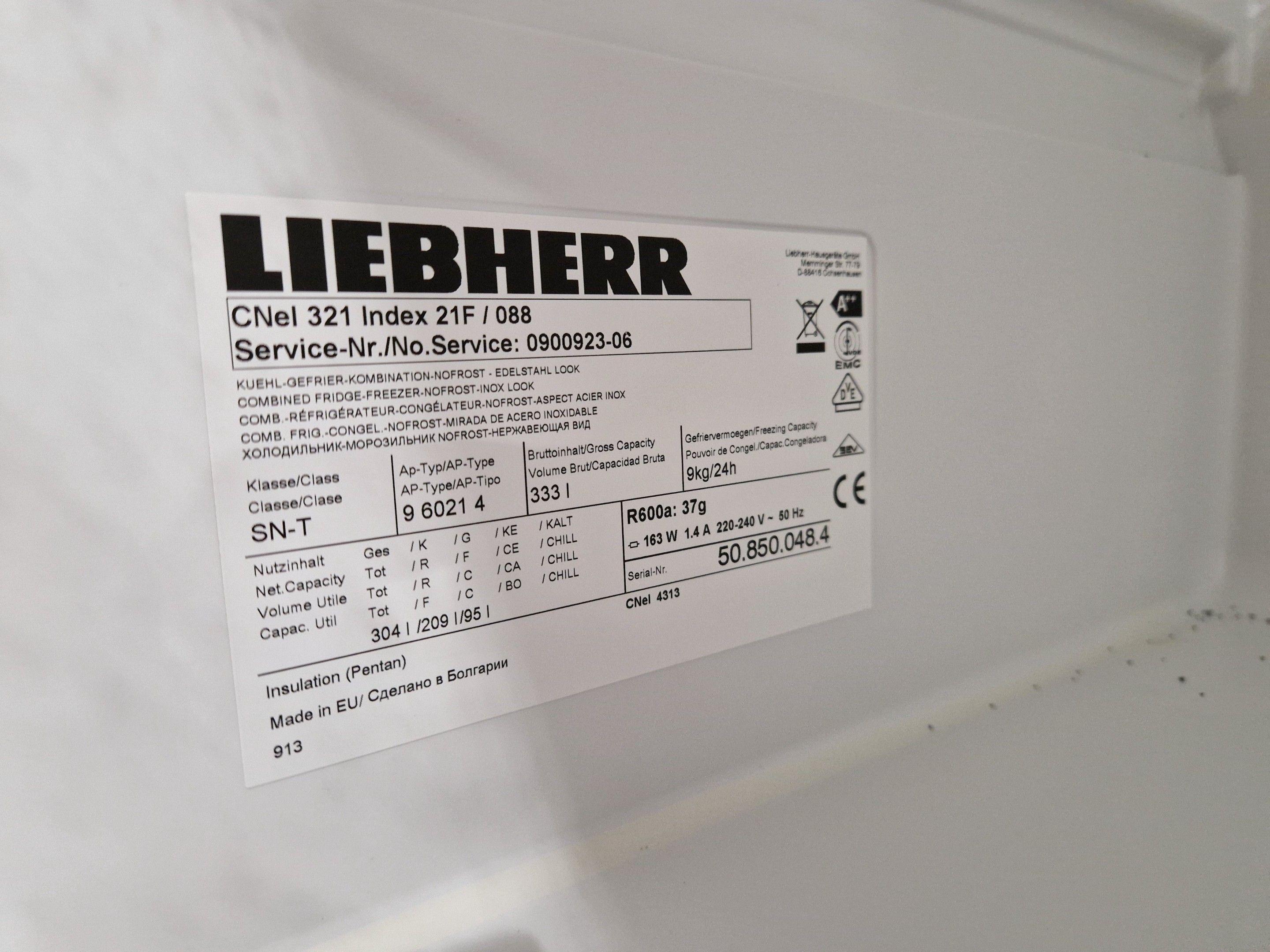 LIEBHERR fridge-freezer, recent model, aluminium case