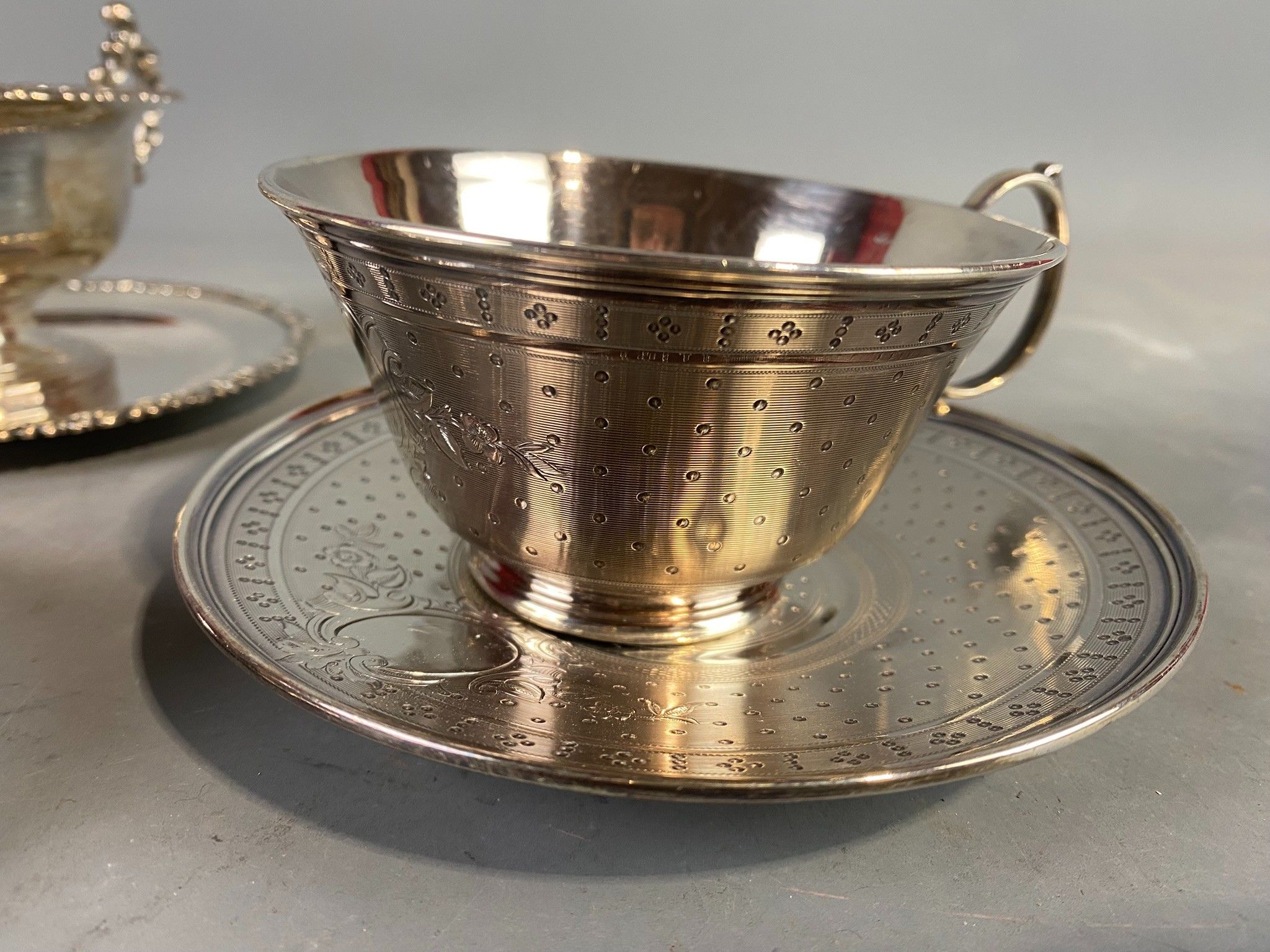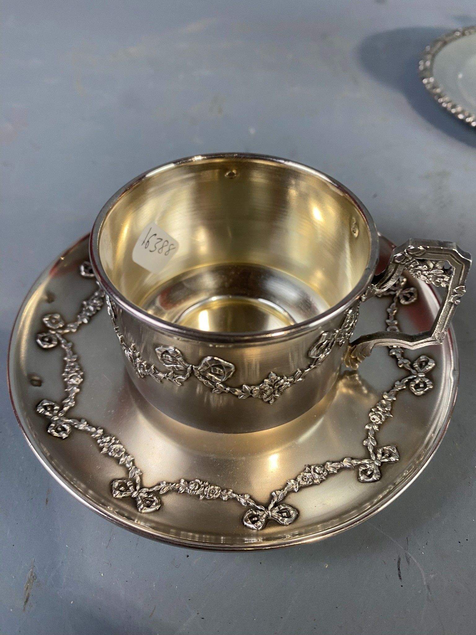 Set of four silver cups and saucers (Minerve hallmark) 19th …