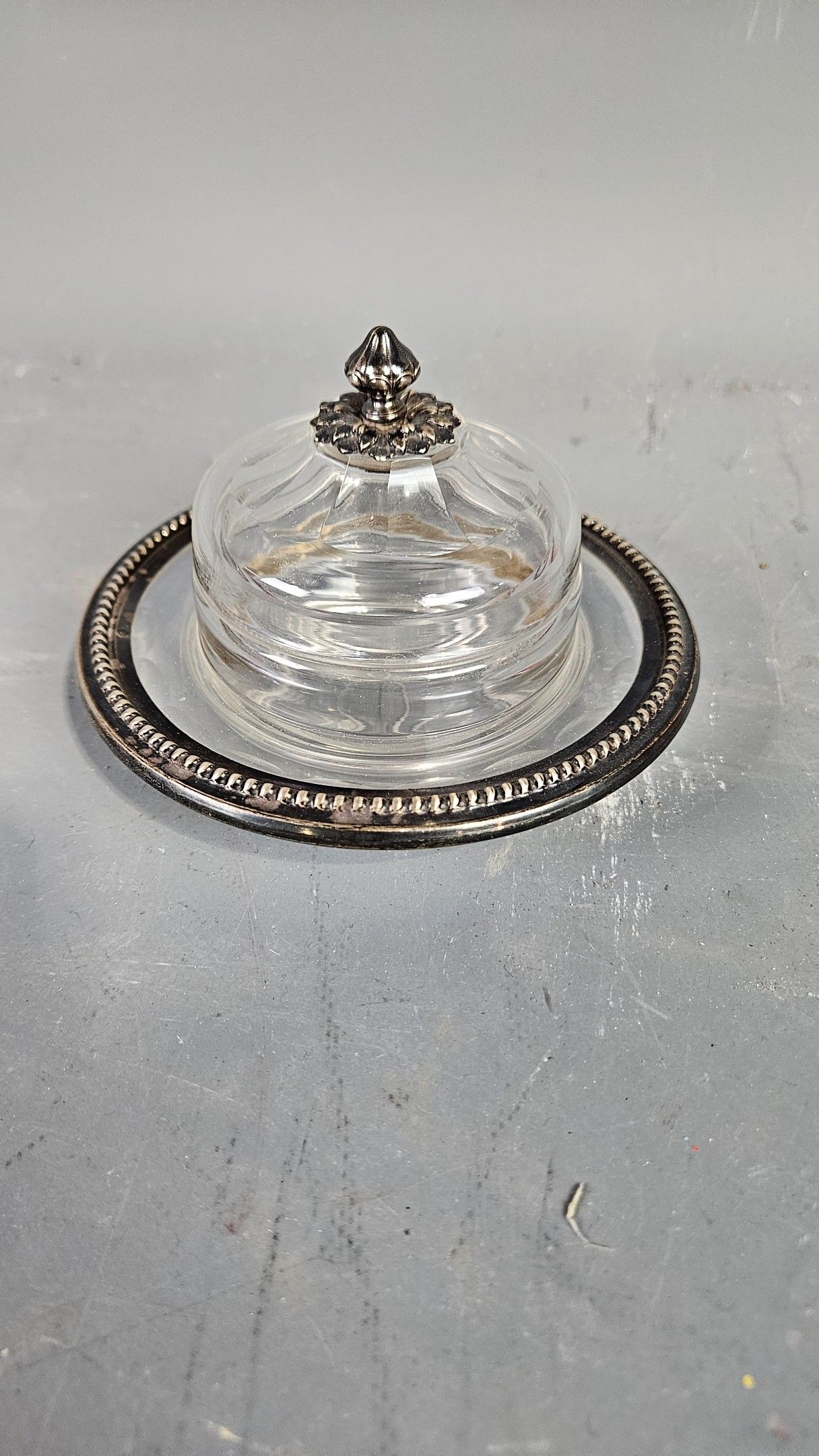 Crystal butter dish and silver mounting (in ruler) decorated…