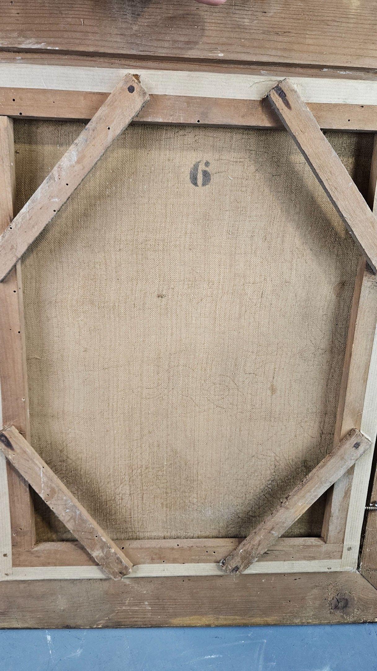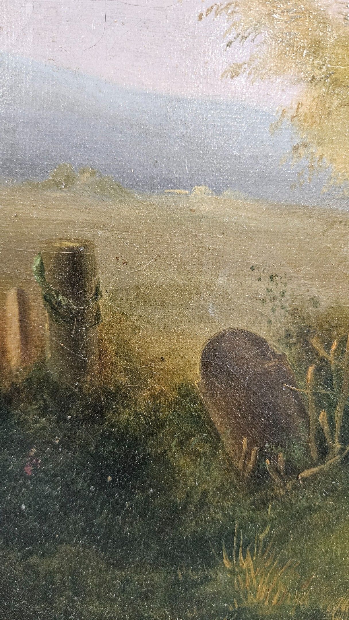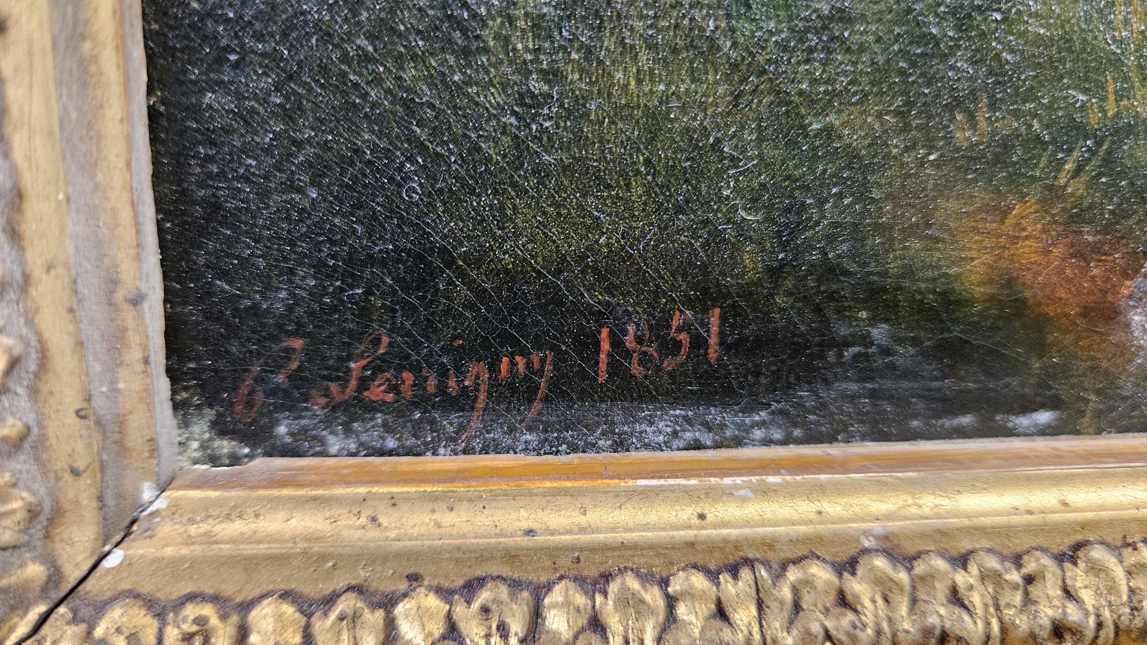 Mid-nineteenth century school: "Young woman with a missal leaving a country church". Oil on canvas (canvas-backed), 41 x 33 cm, SBG and dated 1851