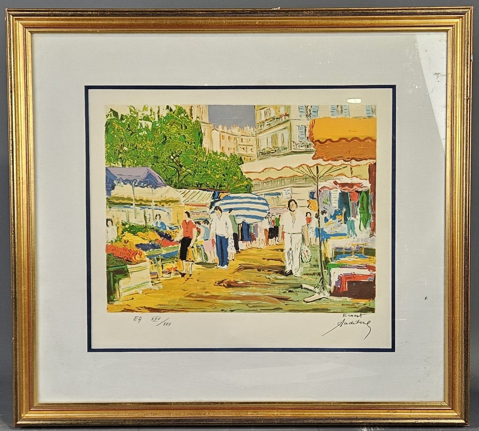 Ernest AUDIBERT (1922-2017) : "Market Scene". Lithograph, countersigned, annotated E.A and numbered XXV/XXV, 37 x 42.5 cm