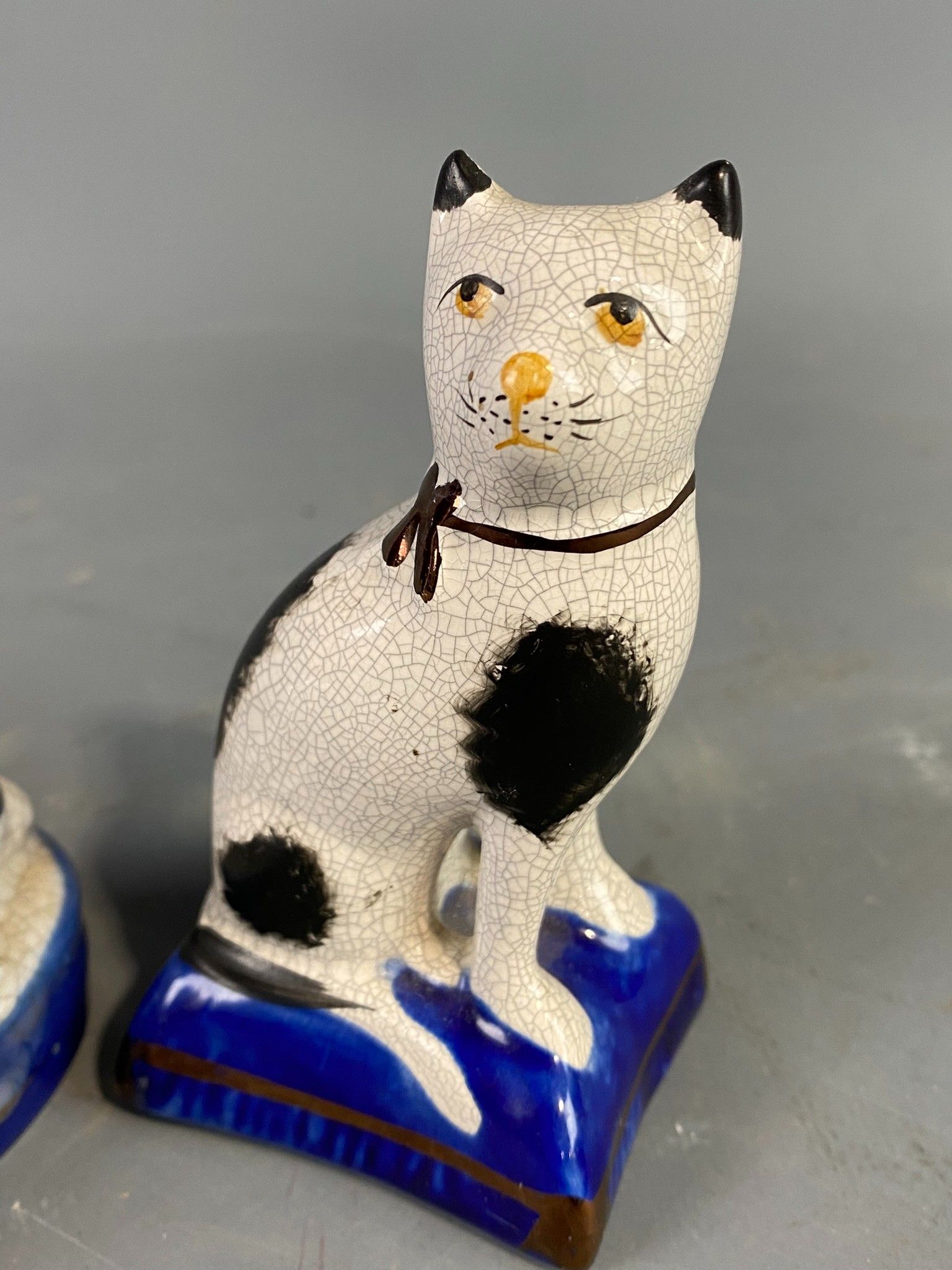 Pair of Staffordshire porcelain cats (Height: 10 cm).