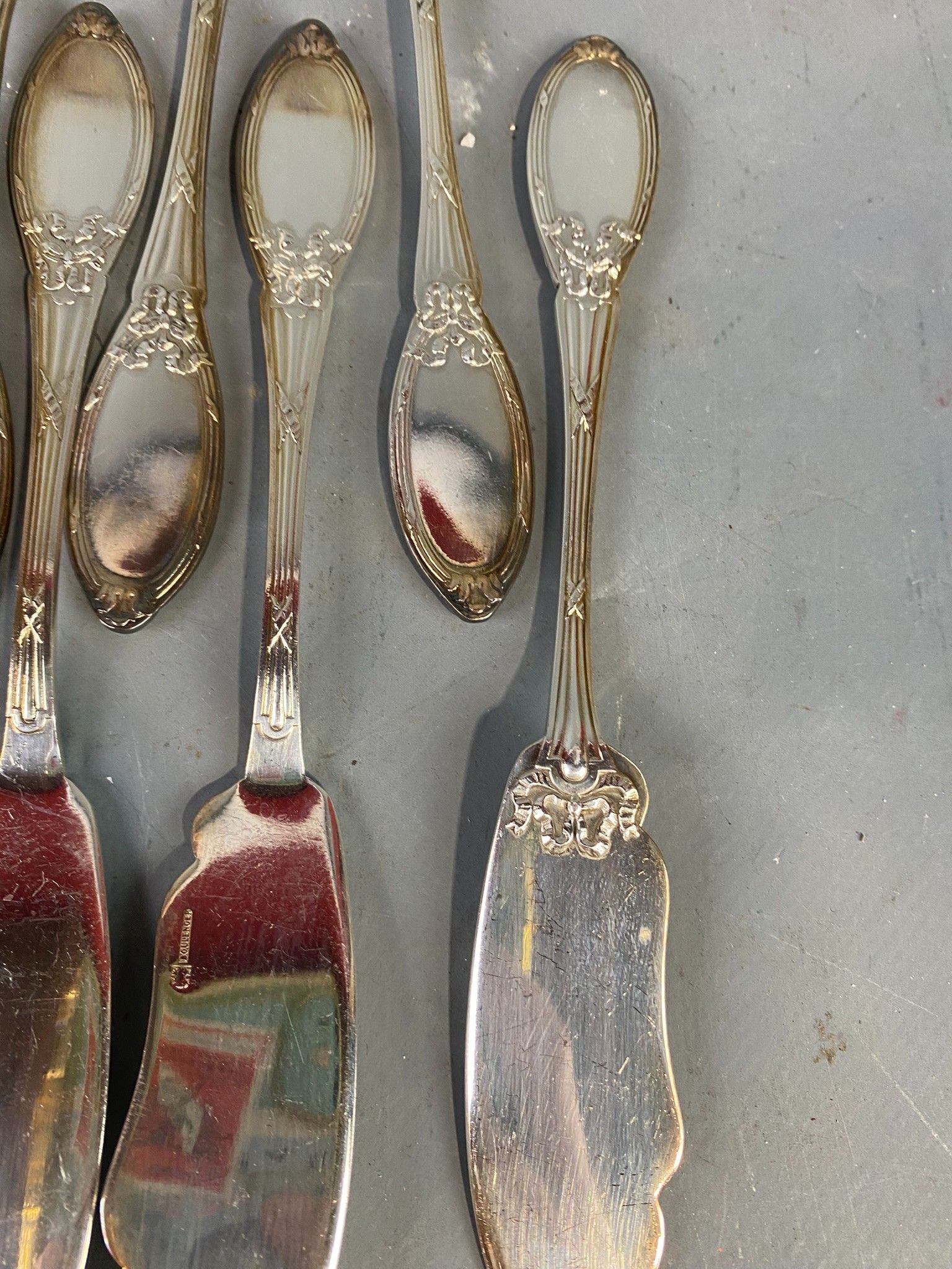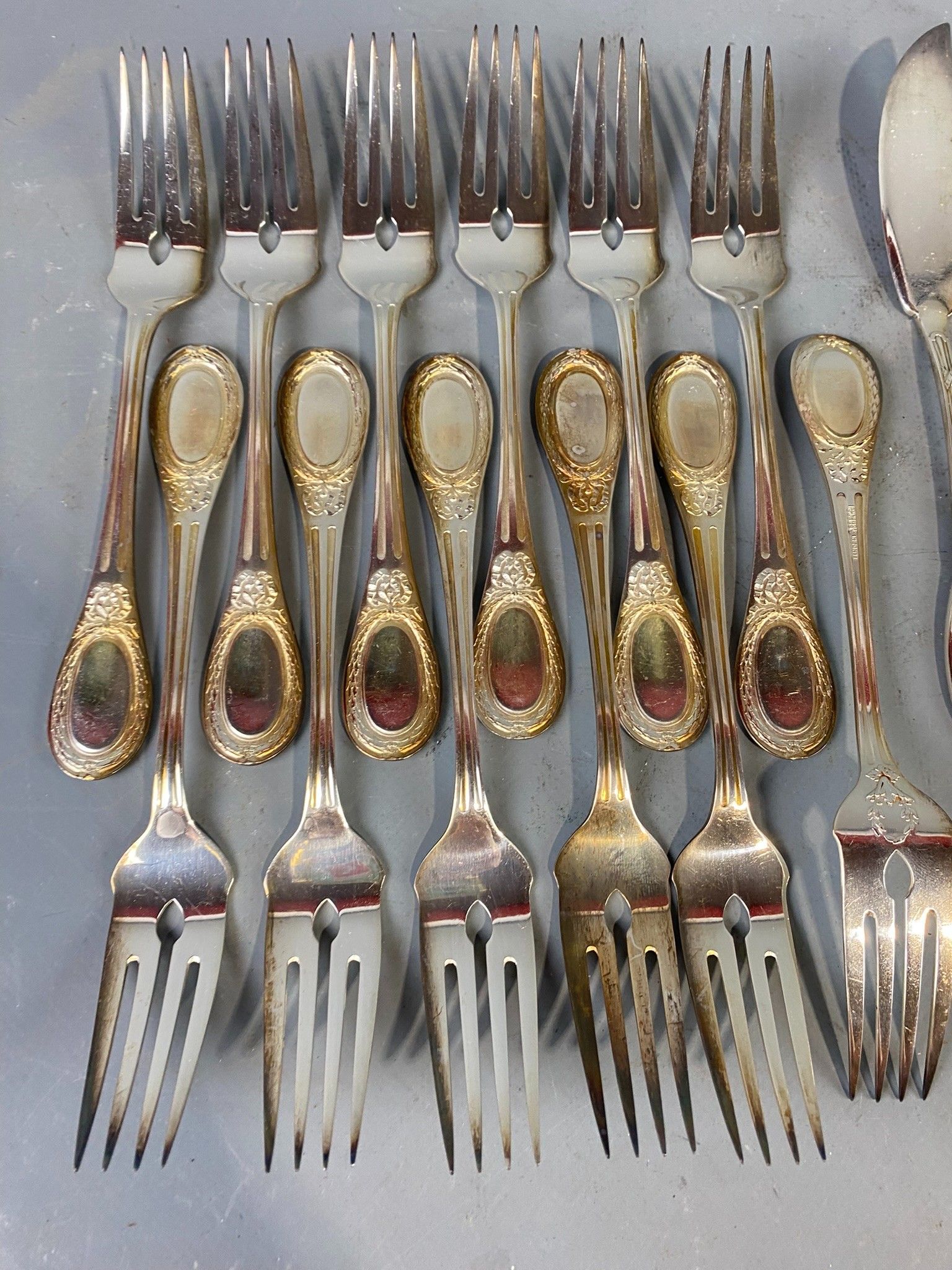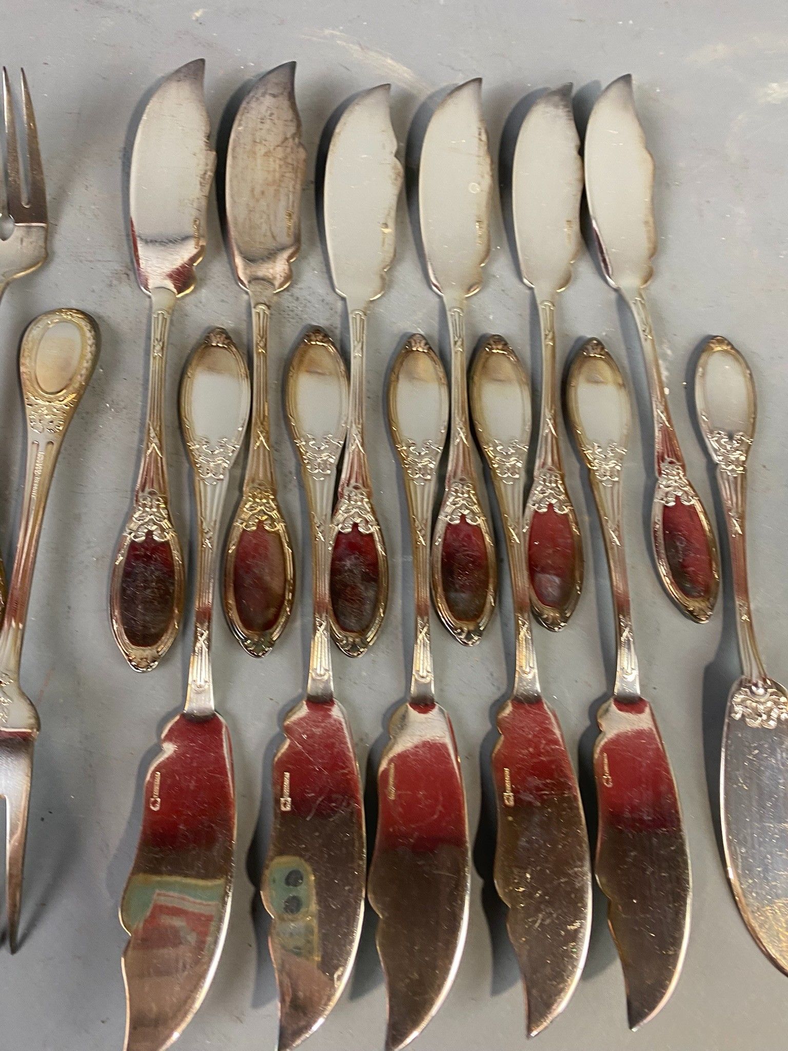 Reunion of twelve silver-plated fish cutlery sets including 12 BOULENGER knives, all in the Louis XVI style