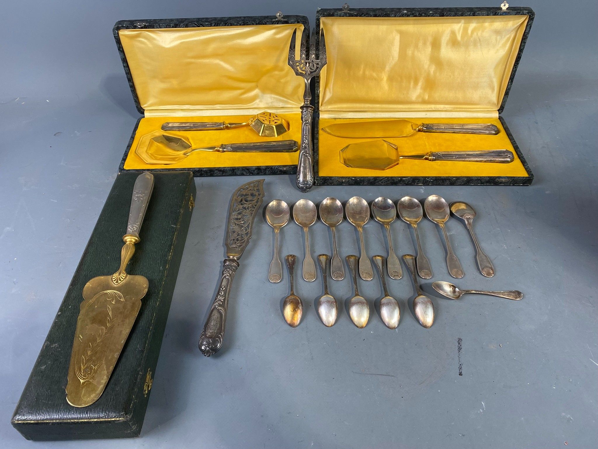 Small batch of silver-plated metal including six Christofle …