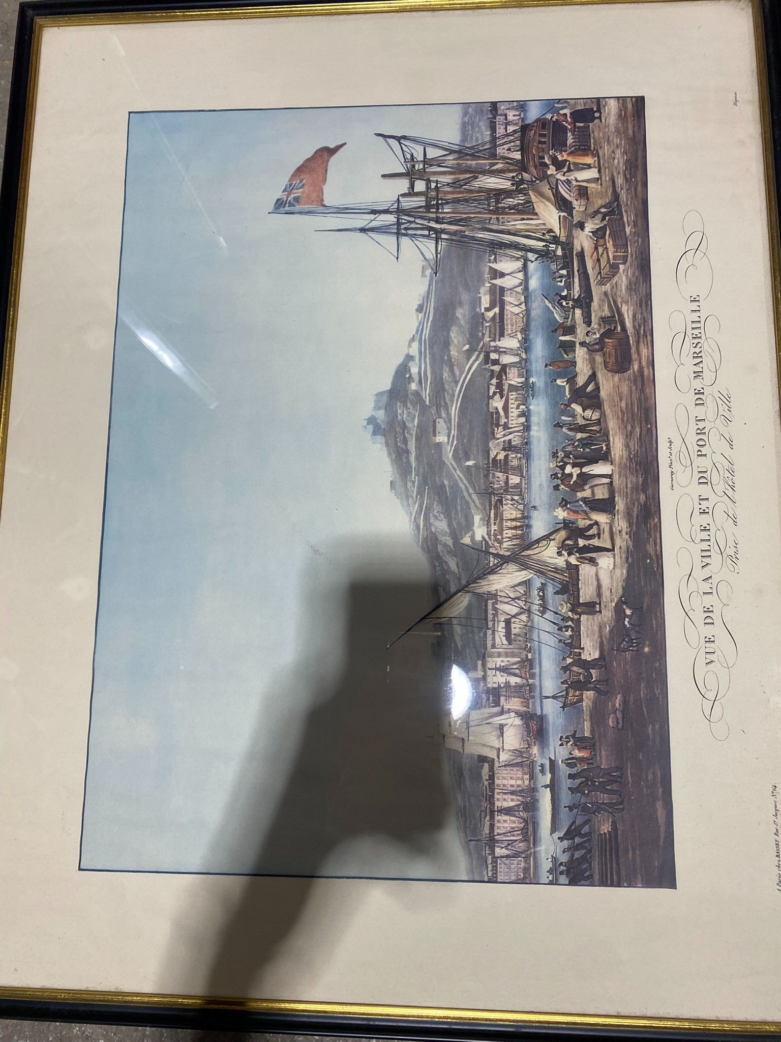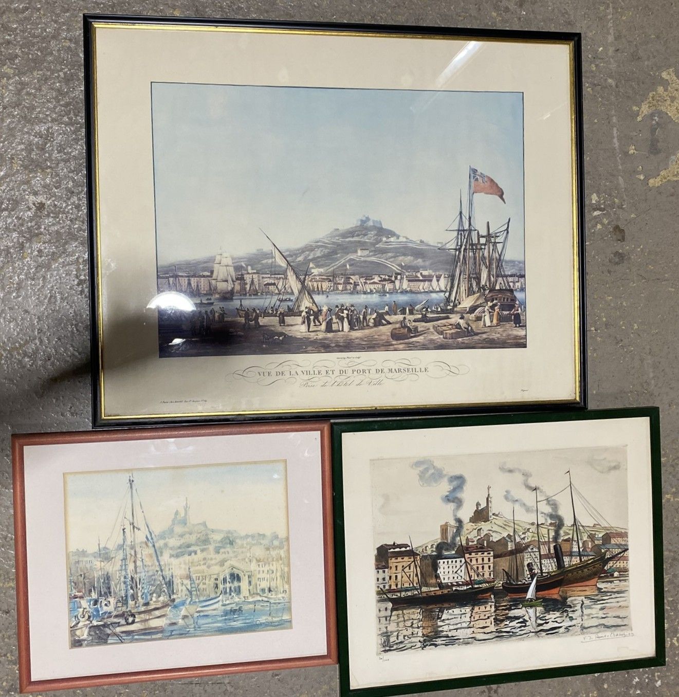 Print by ROUX-CHAMPION showing a view of the Port of Marseille. Two reproductions are attached