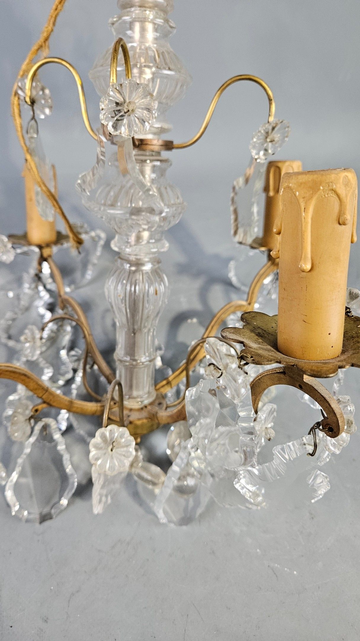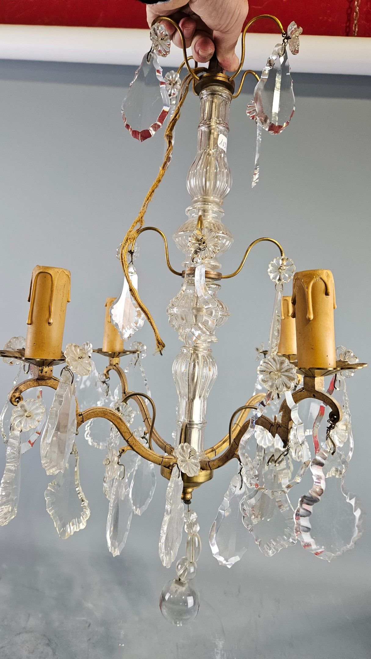A small chandelier in gilt metal and decorated with pendants, illuminated by four arms of light. Height: 53 cm