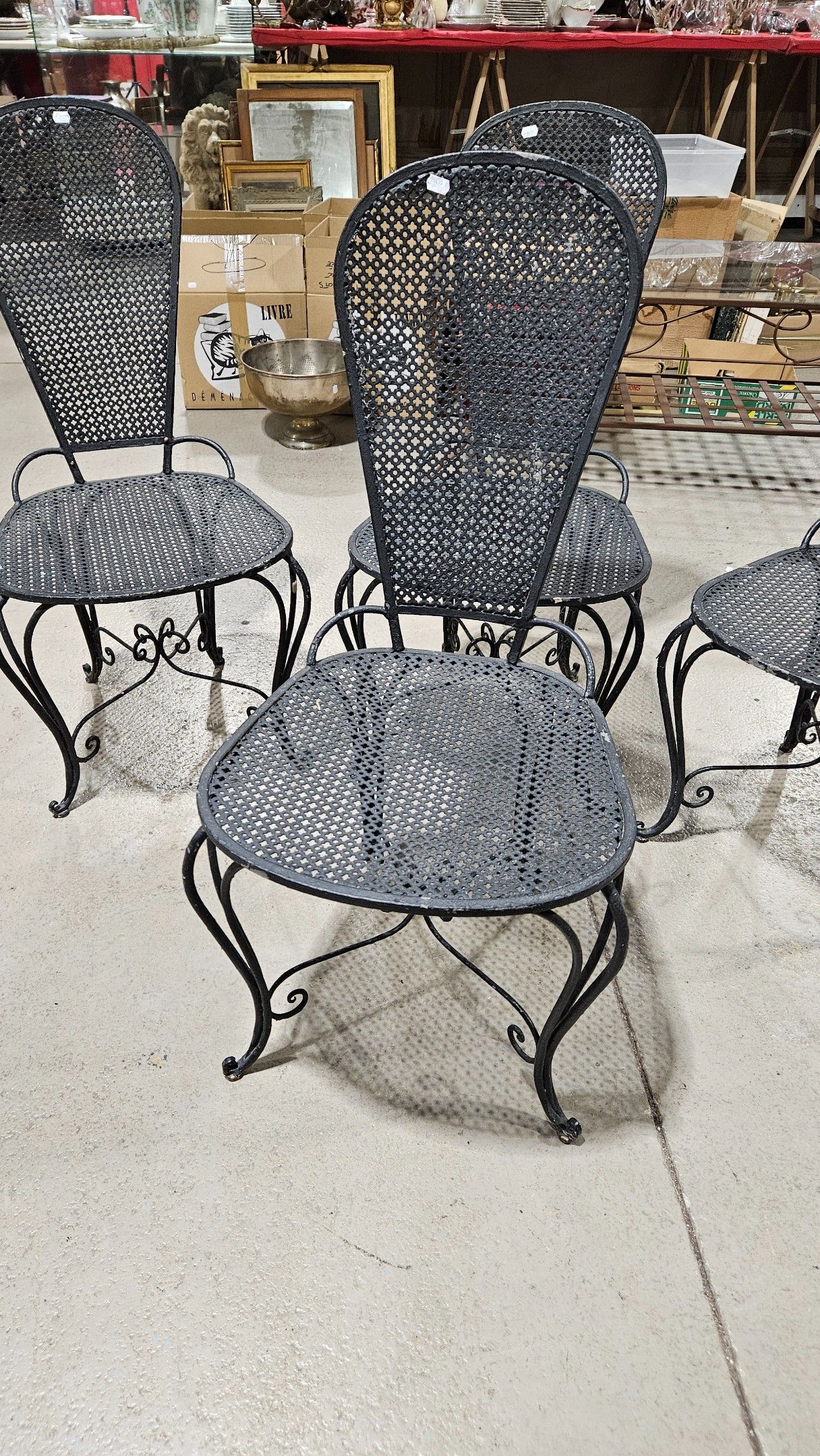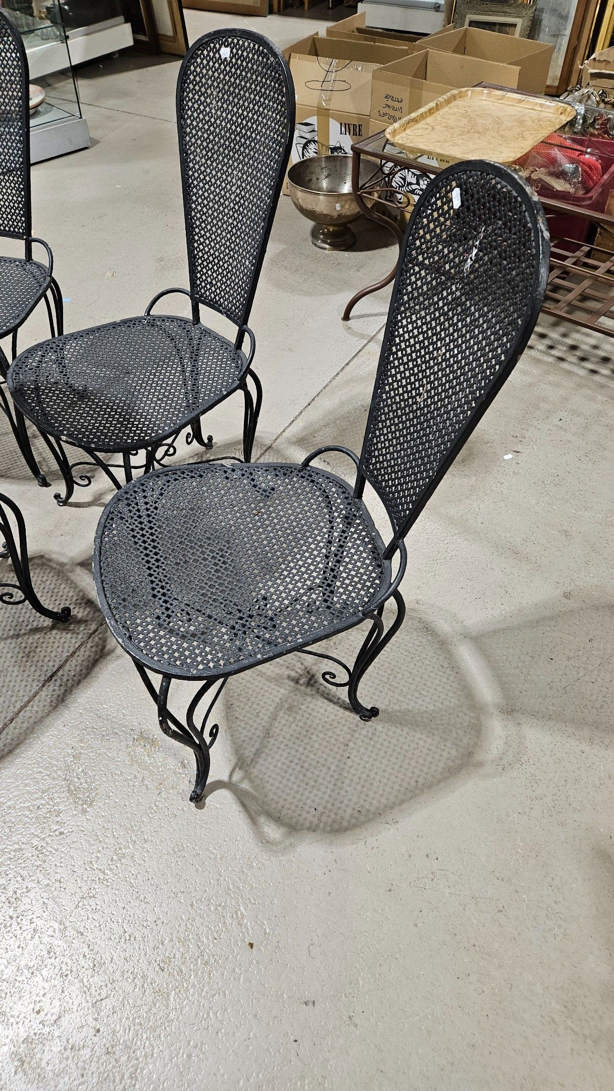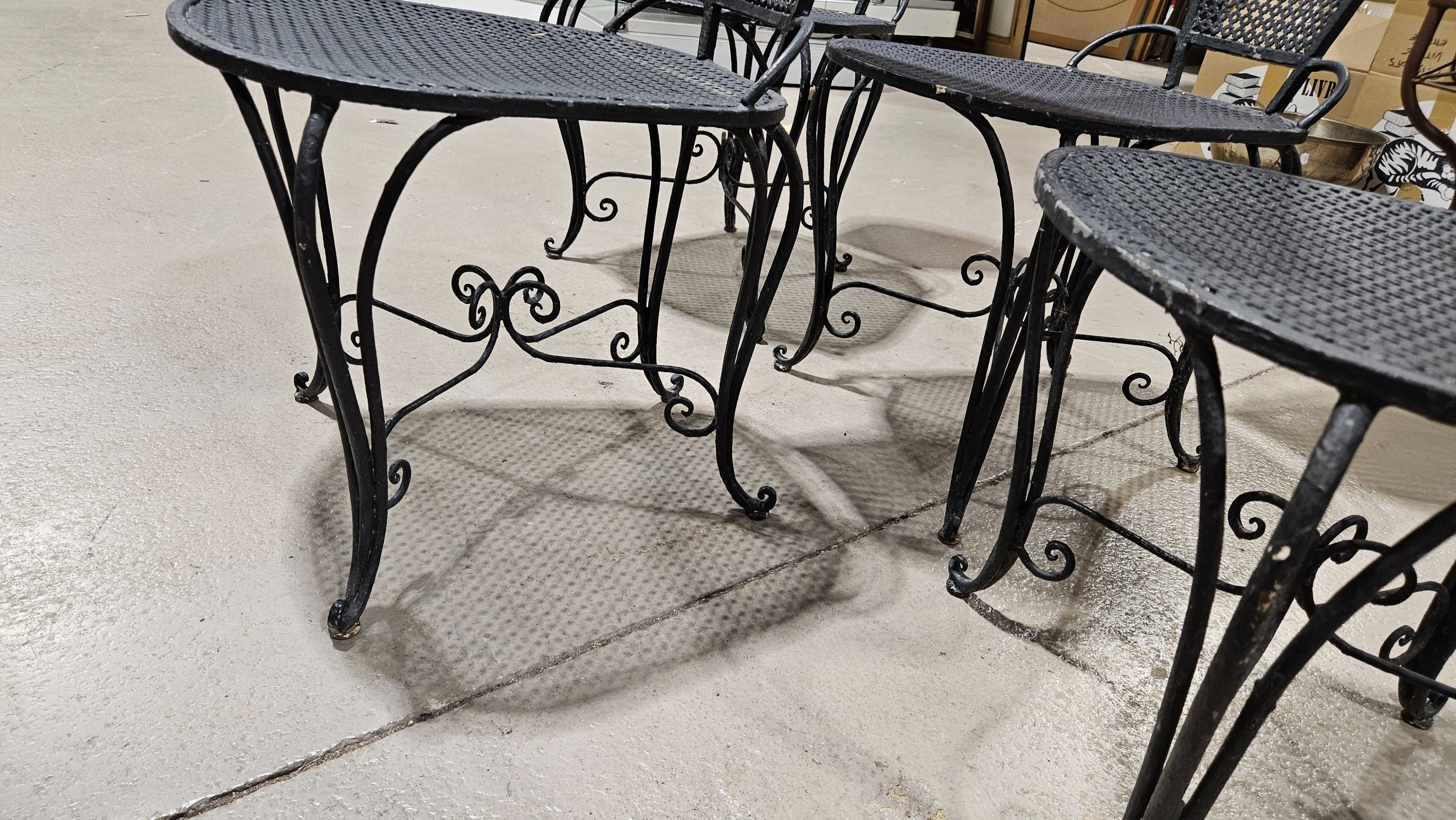 Set of four low wrought-iron chairs from the 1960s, black la…