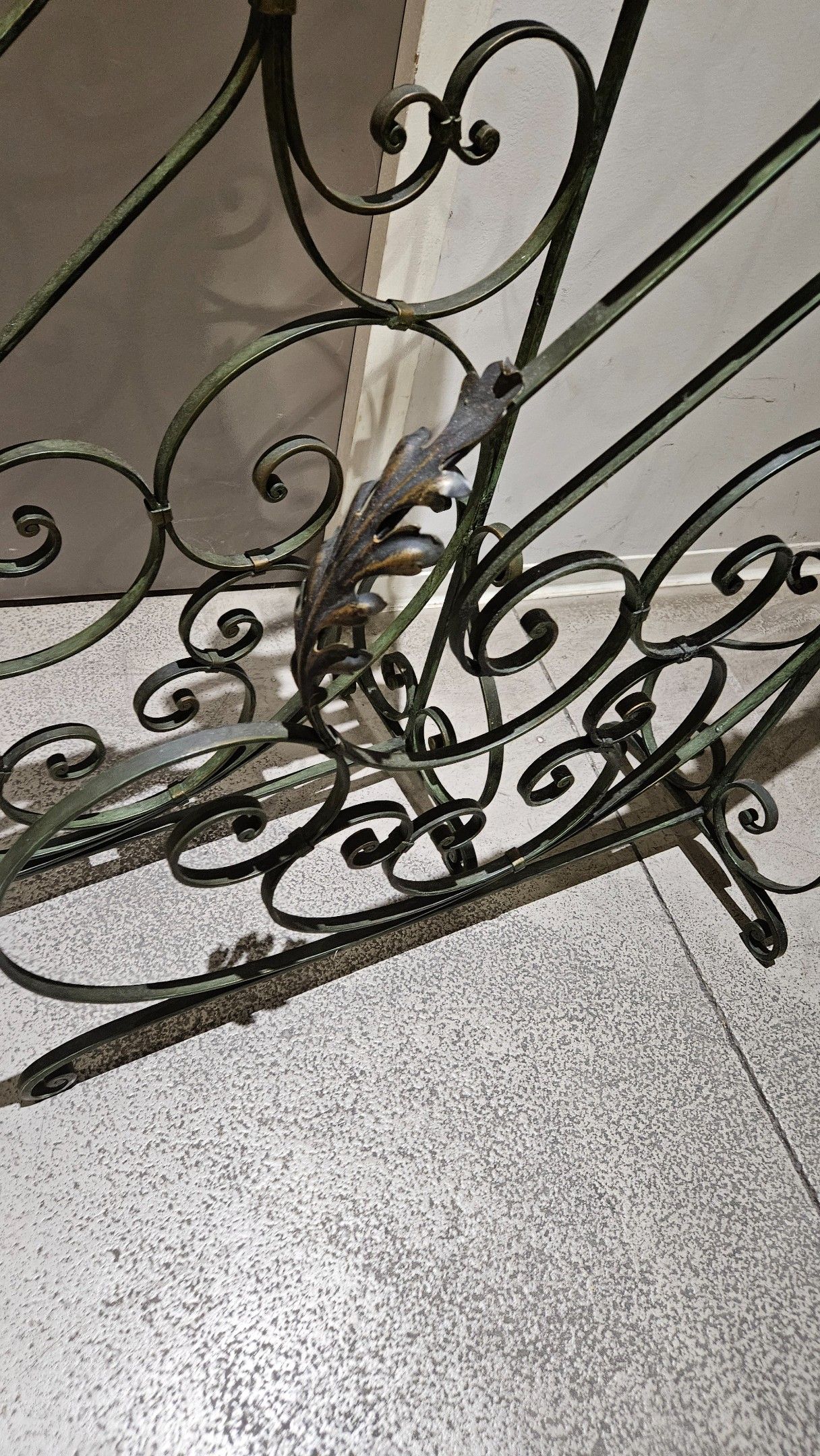 Two walkway units in wrought iron or green lacquered iron. Height: 160 cm, length: 75 cm