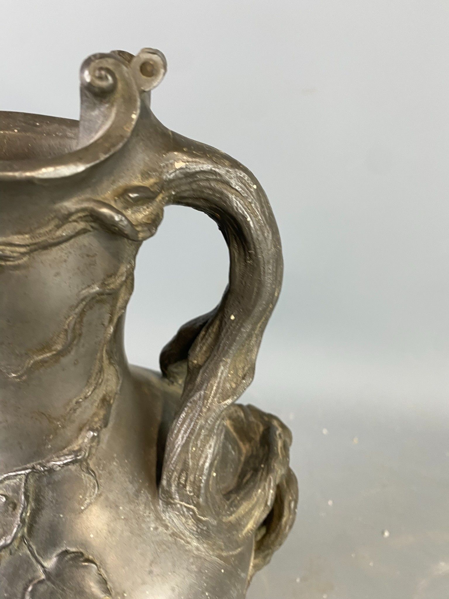 Elegant pewter ewer from the Art Nouveau period with a flowe…