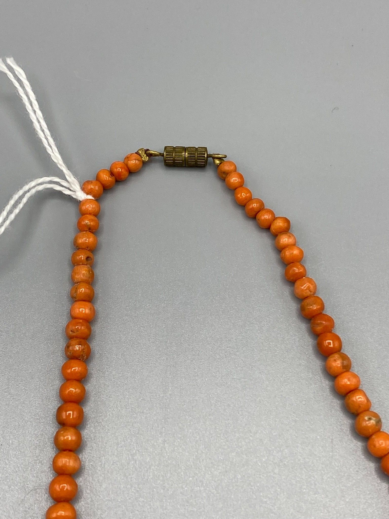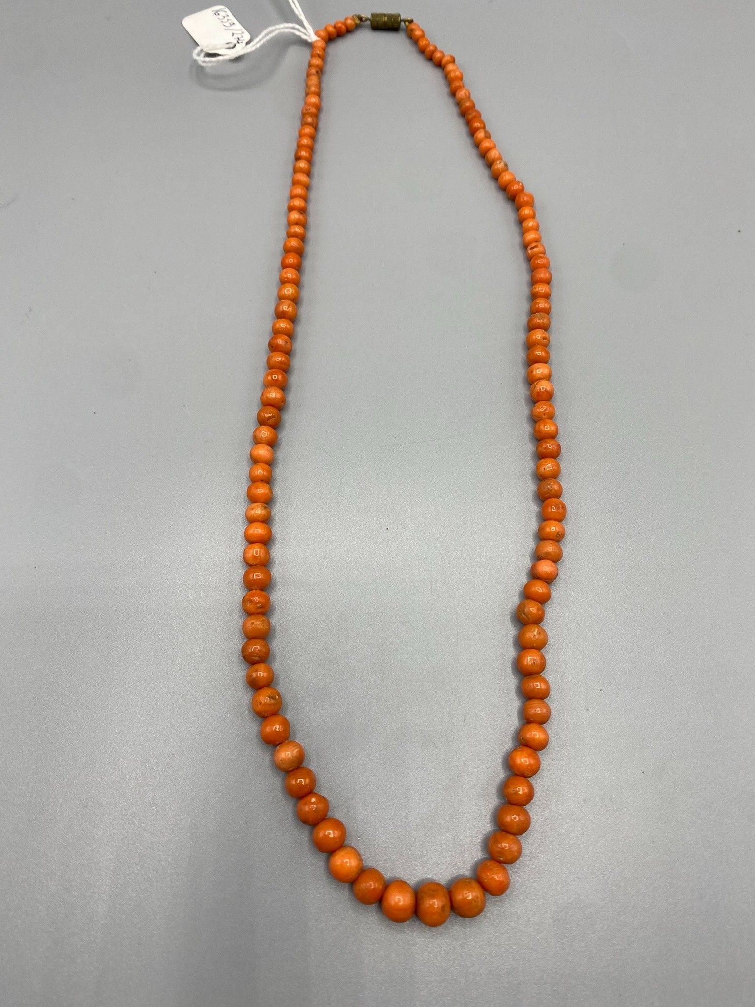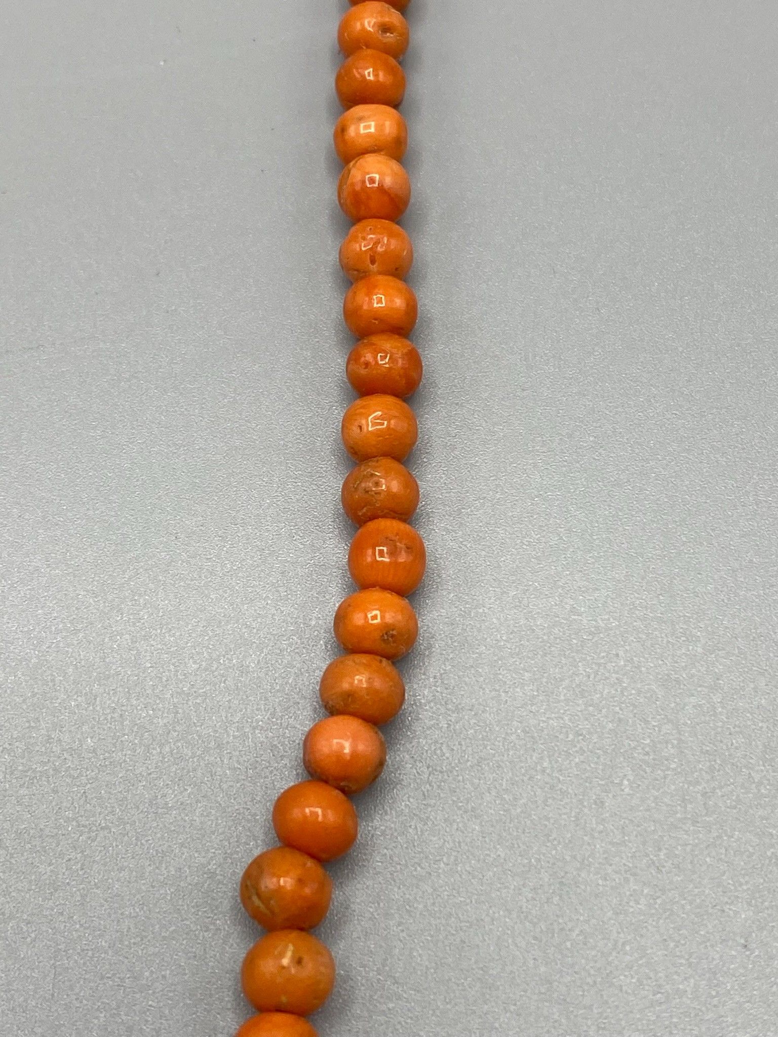 Fine necklace of gradient coral beads (22.5 gr). Diameter of the largest bead 7 mm. Length 52 cm