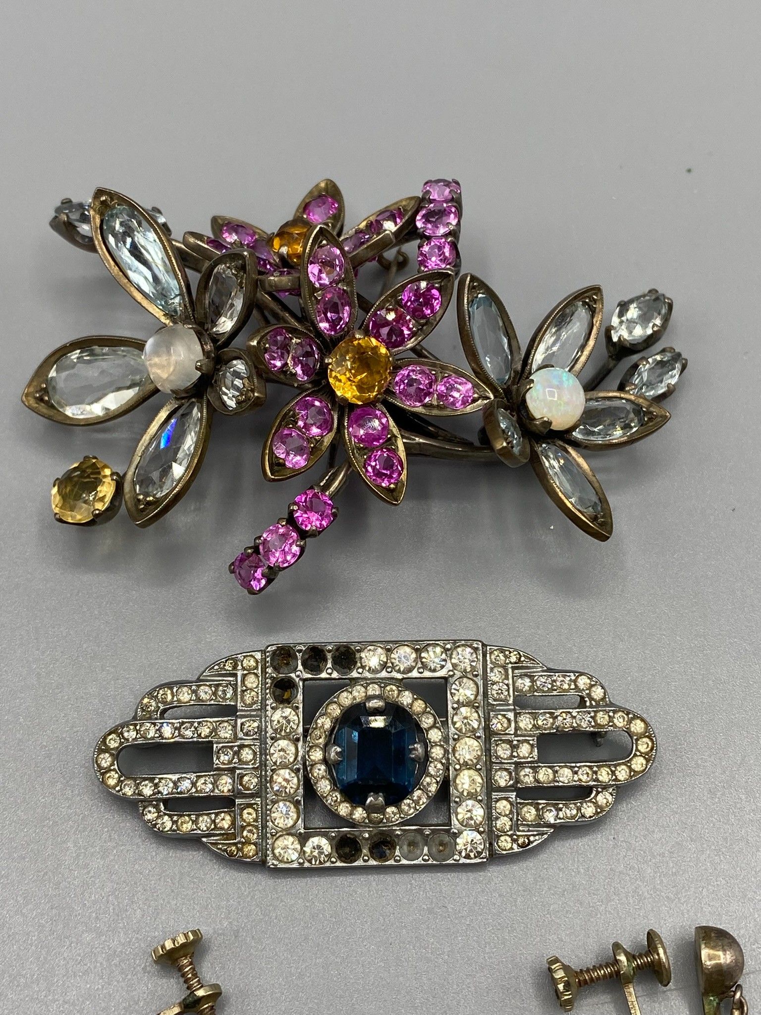 Set of quality costume jewellery: Flower alloy brooch with r…