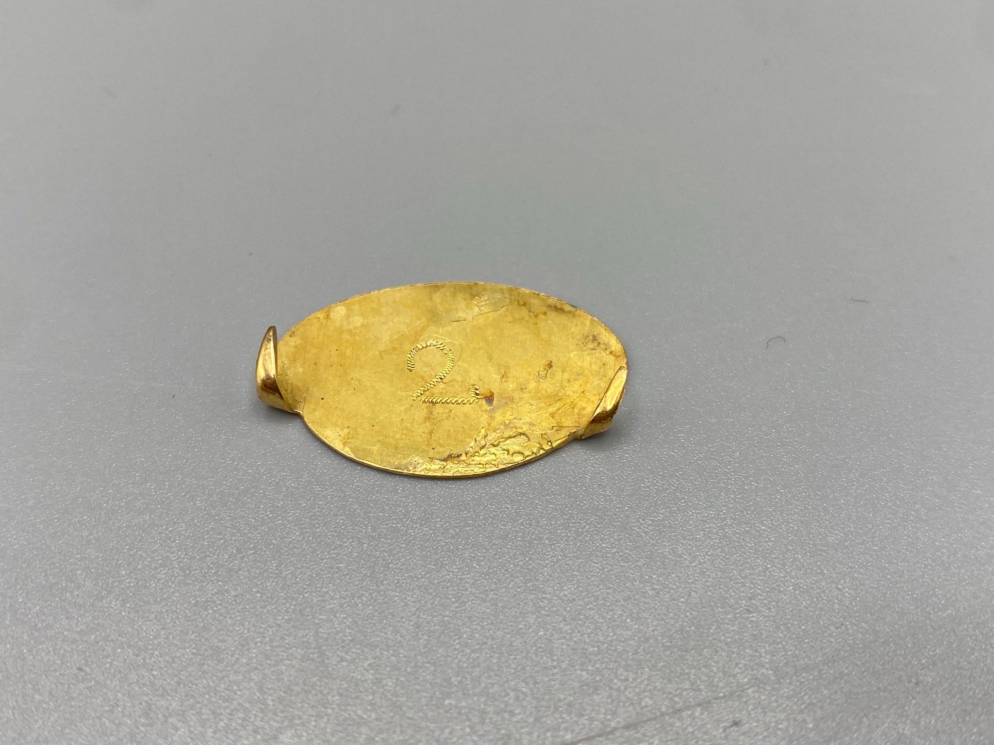Small oval gold plate (in rule) incomplete debris. 1.7 g