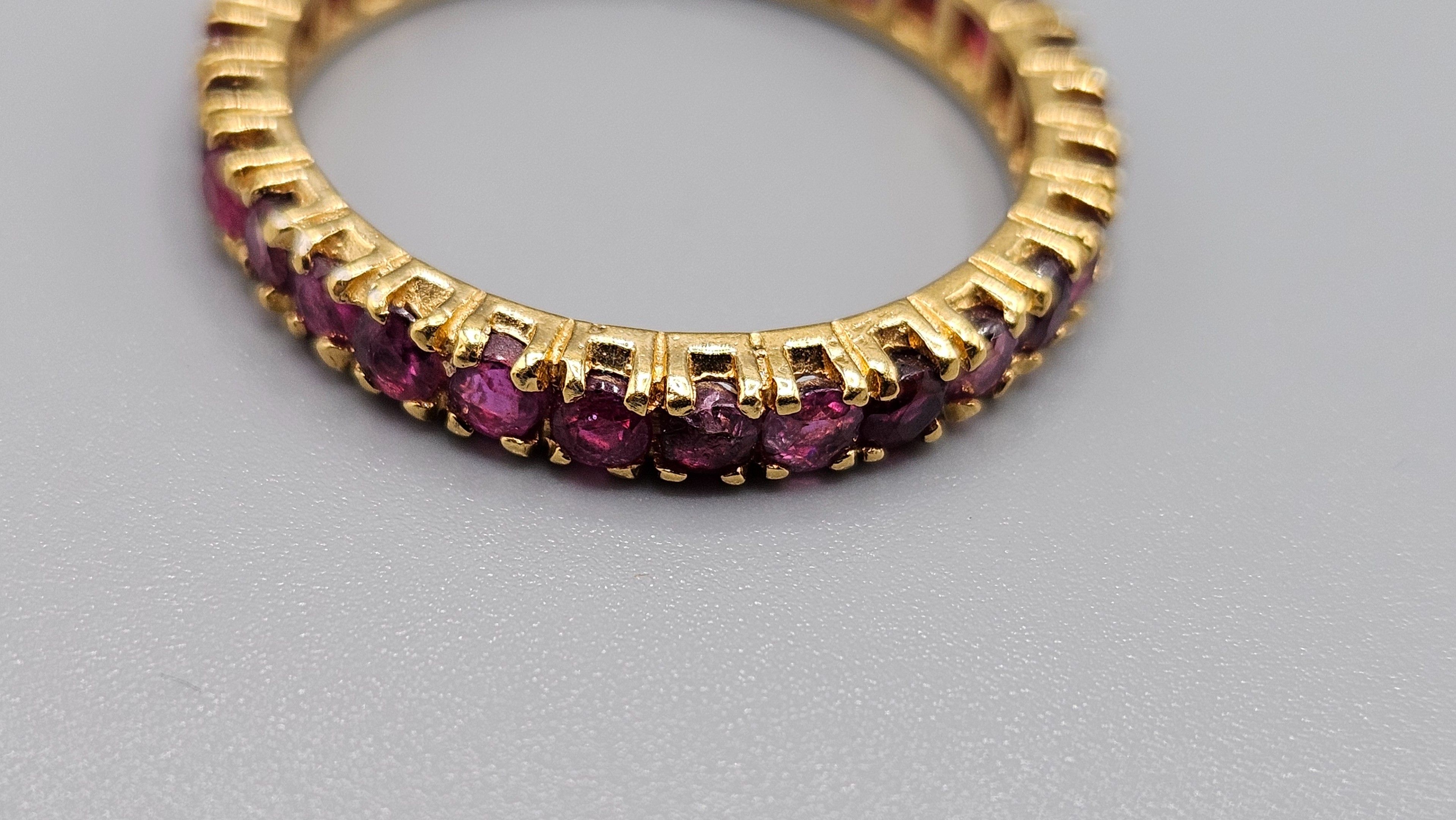 American wedding band in gold (tolerance) set with tiny red stones. 1.9 gr. Tdd: 58