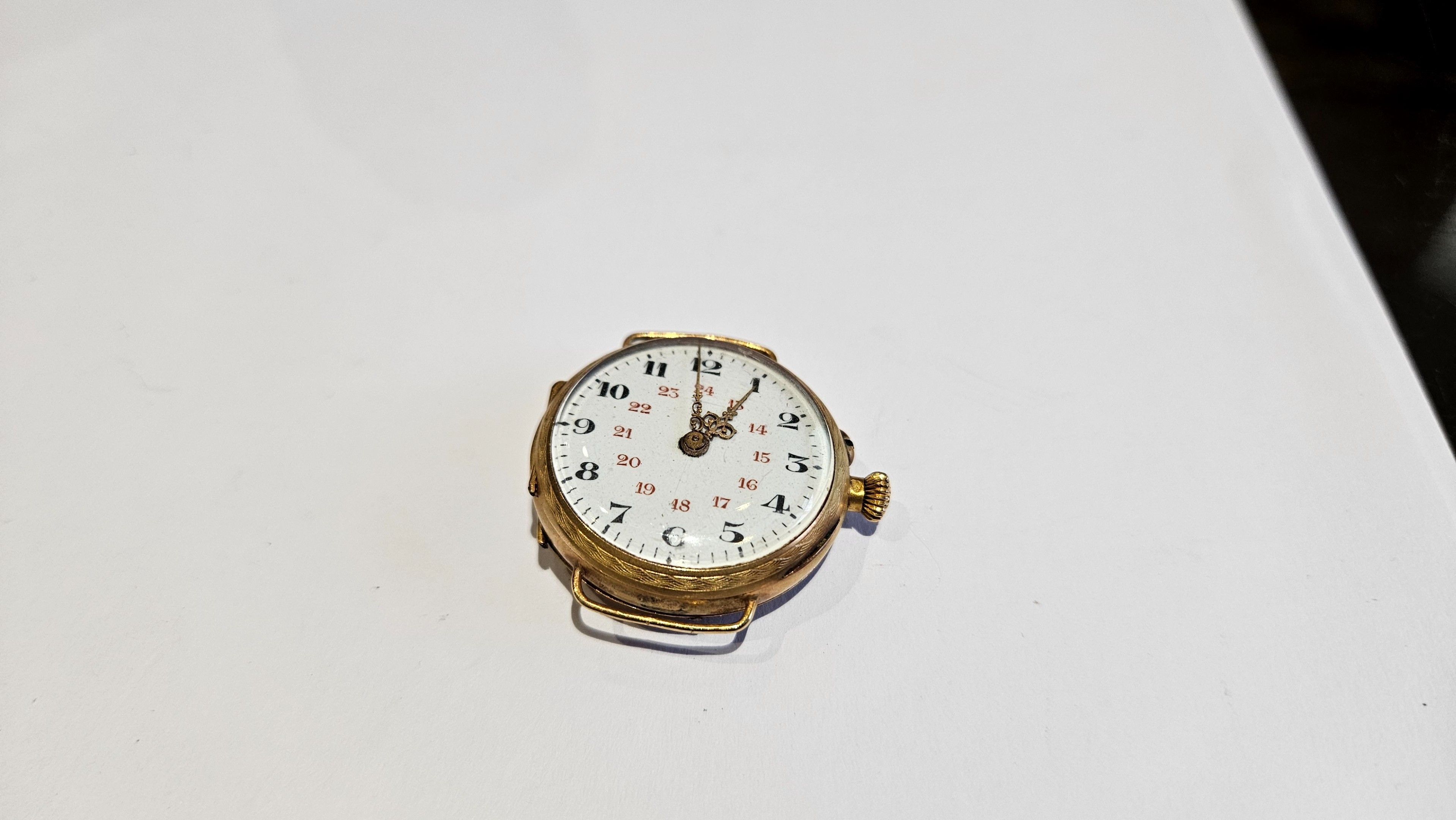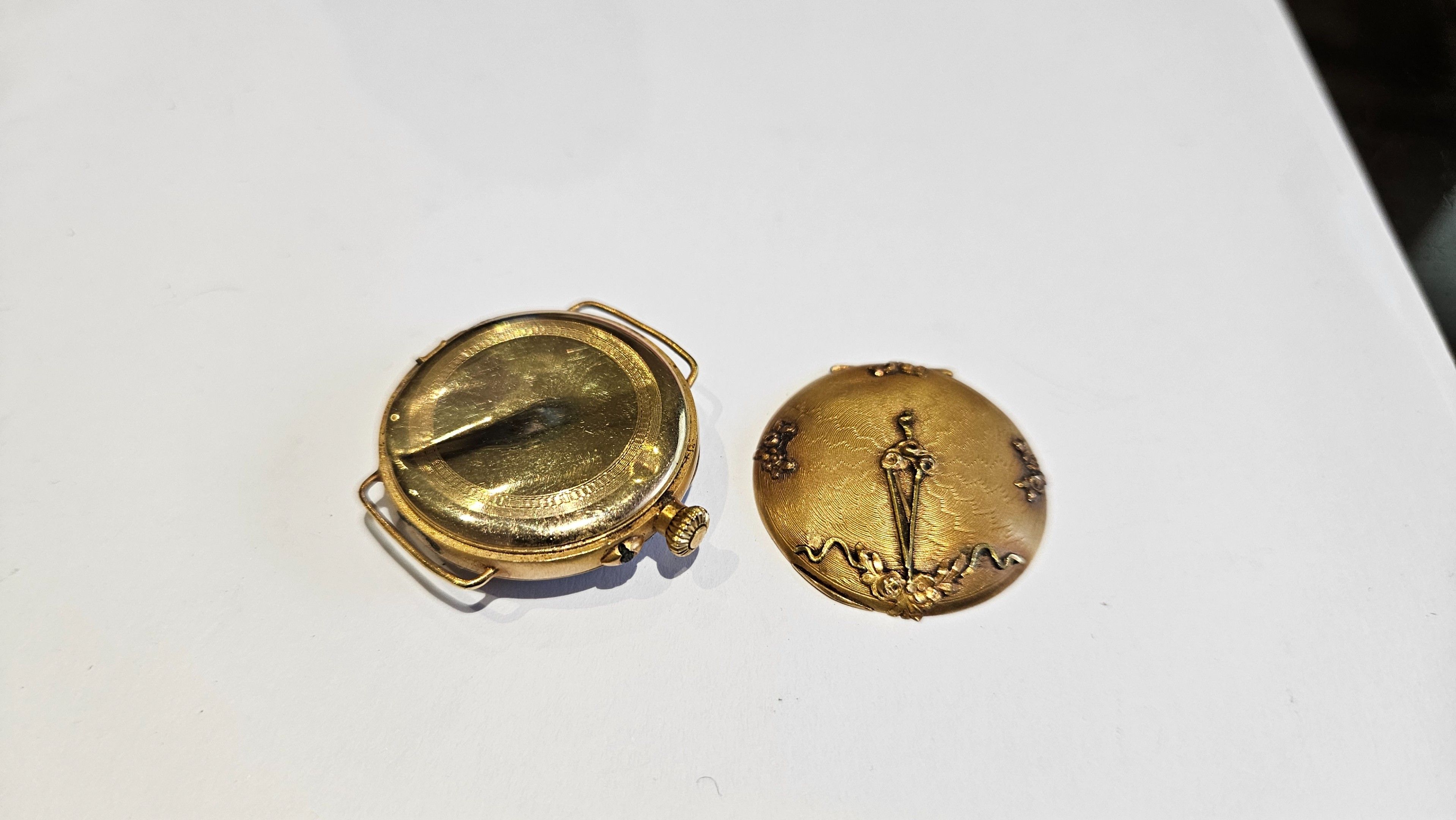 Case of an old gold wristwatch, gold inner cup (in order). 13.2 g gross. Back hinge damaged.