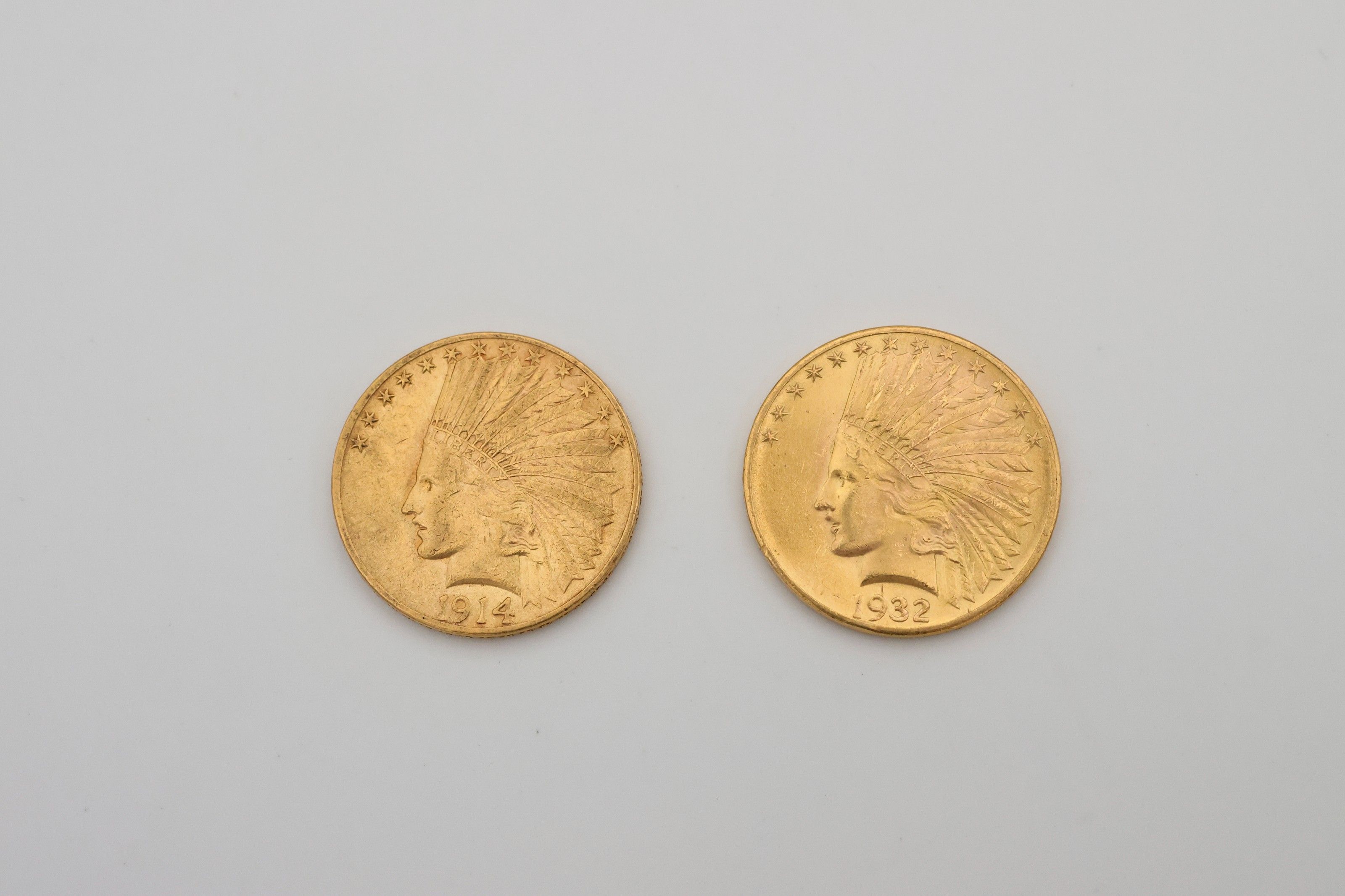 By designation: Lot of 2 10-dollar gold coins United States of America 1914 and 1932, 33.5 g - not visible at the auction, in the bank vault