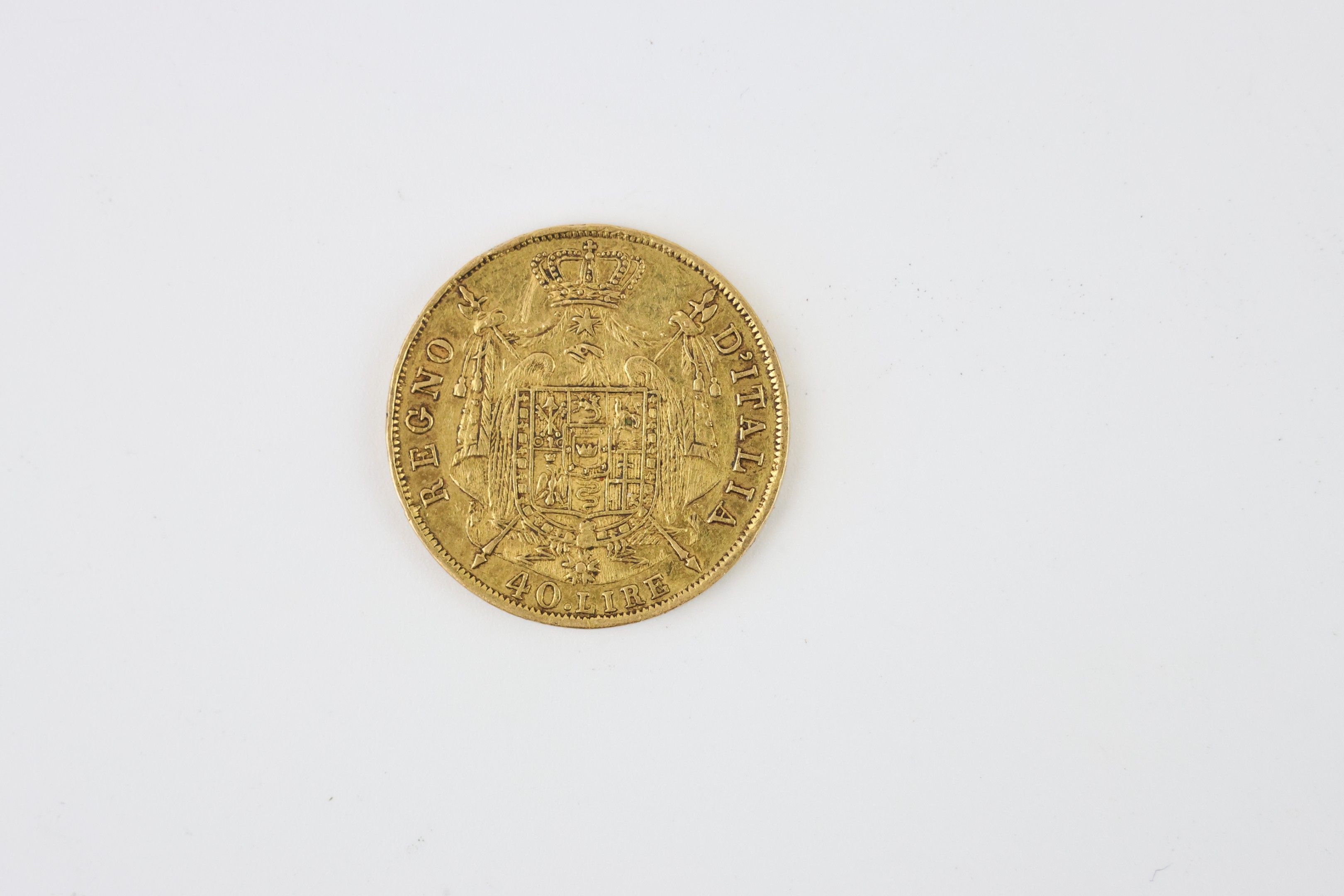 On designation: 40 lira gold coin Napoleon I Emperor and Kin…