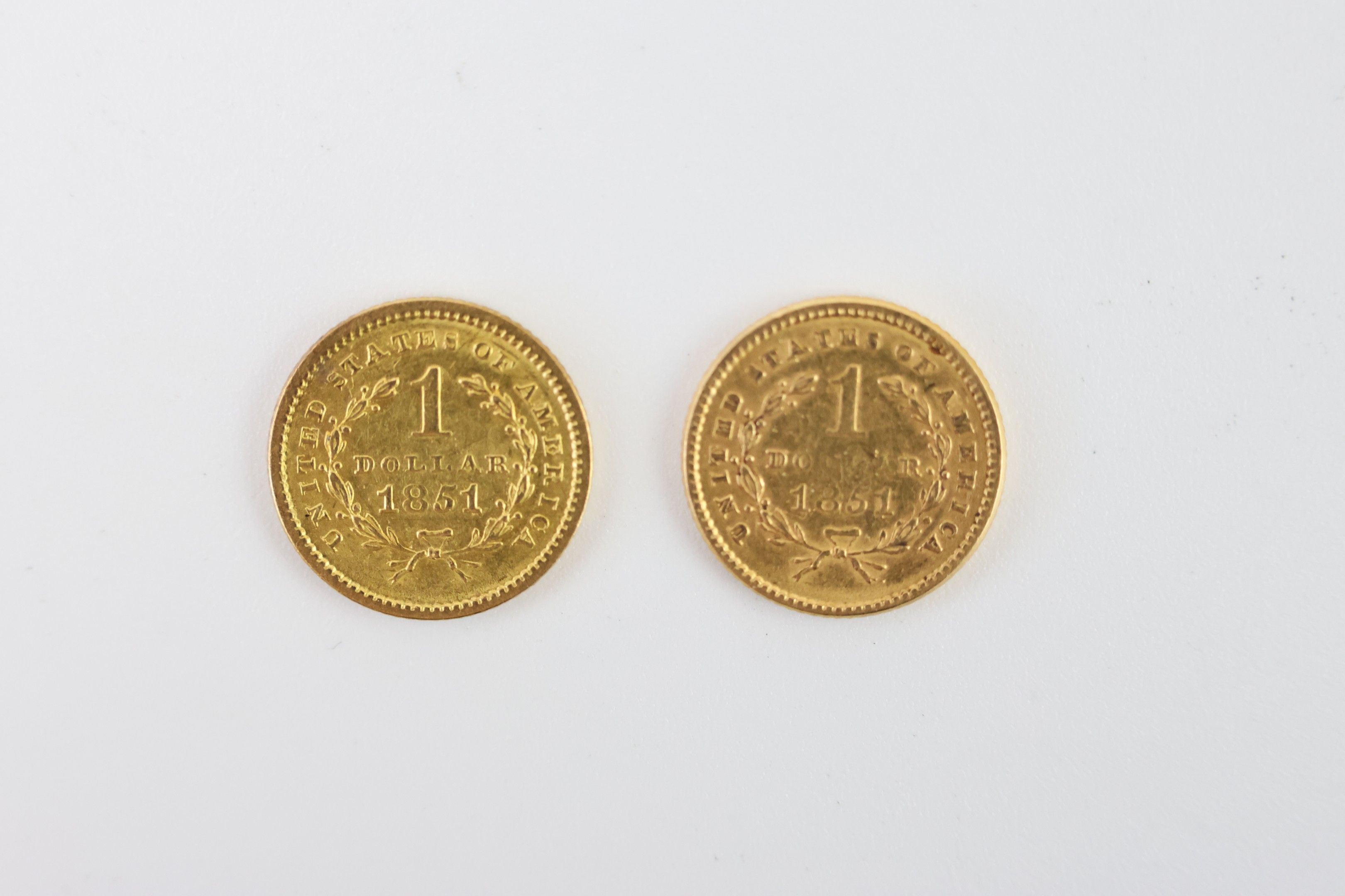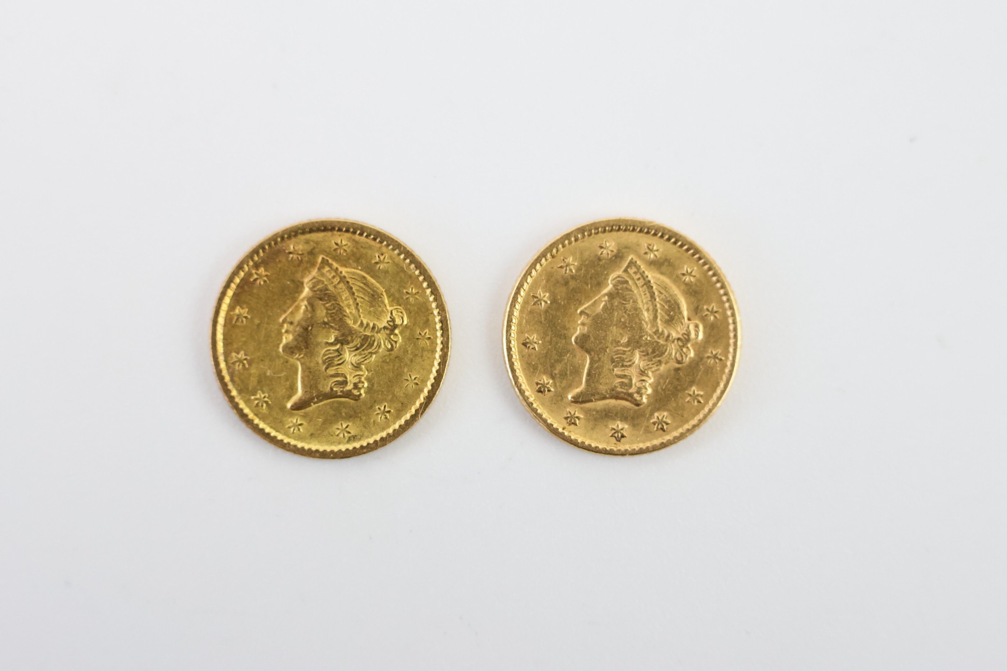 By designation: Lot of 2 United States of America 1 dollar gold coins 1851 x 2, 3.3 g - not visible in the study, in the bank vault