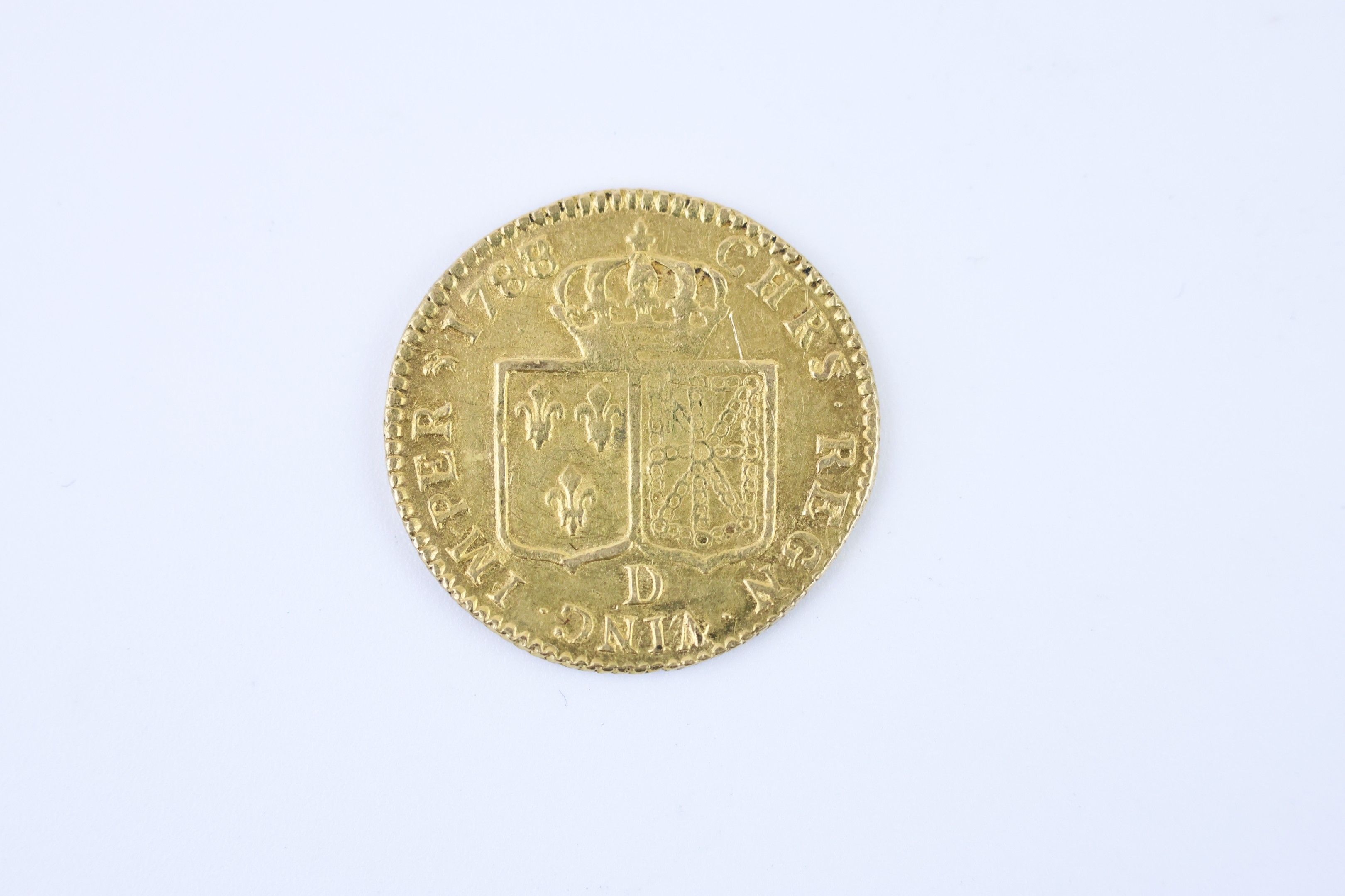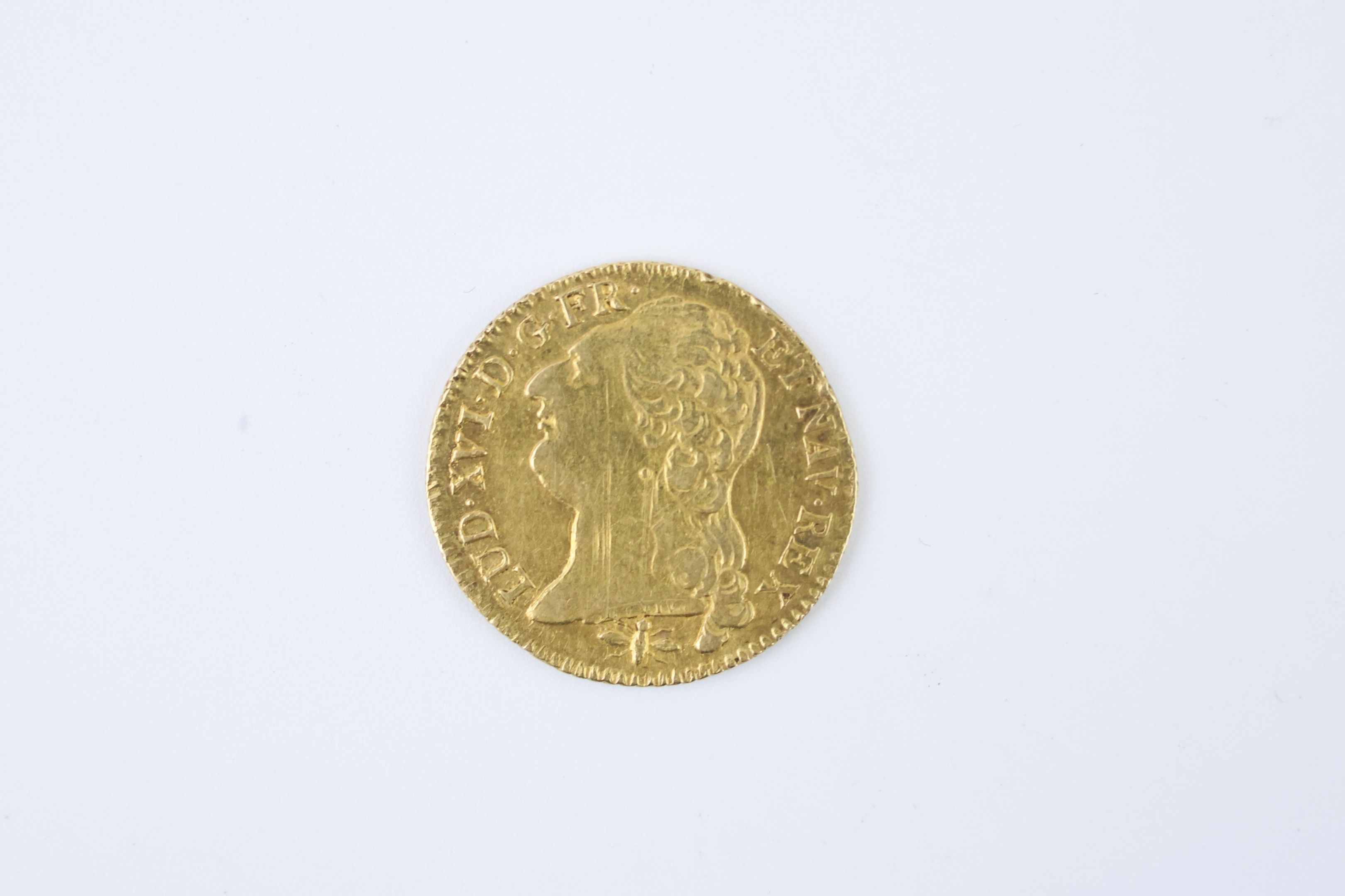 By designation: Louis XVI (1774-1793), louis d'or au buste nu 1788 D Lyon, 7.6 g - not visible in the study, in the bank vault