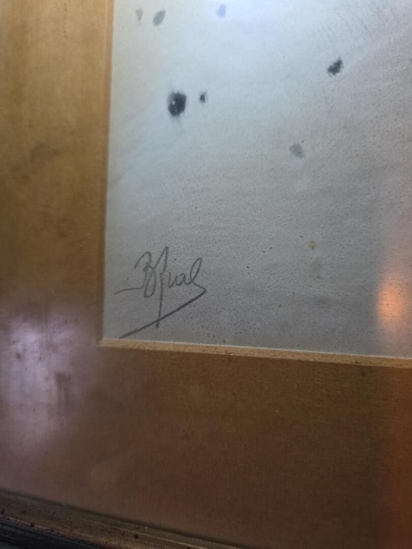 On the mantelpiece: a frame representing "a hunting dog hold…