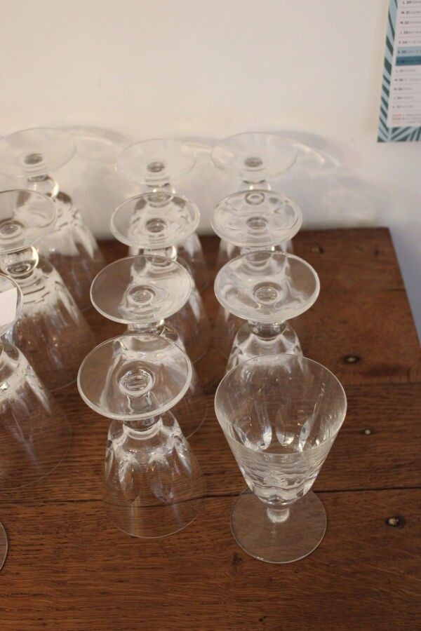 SAINT LOUIS 7 crystal water glasses and 8 crystal wine glasses