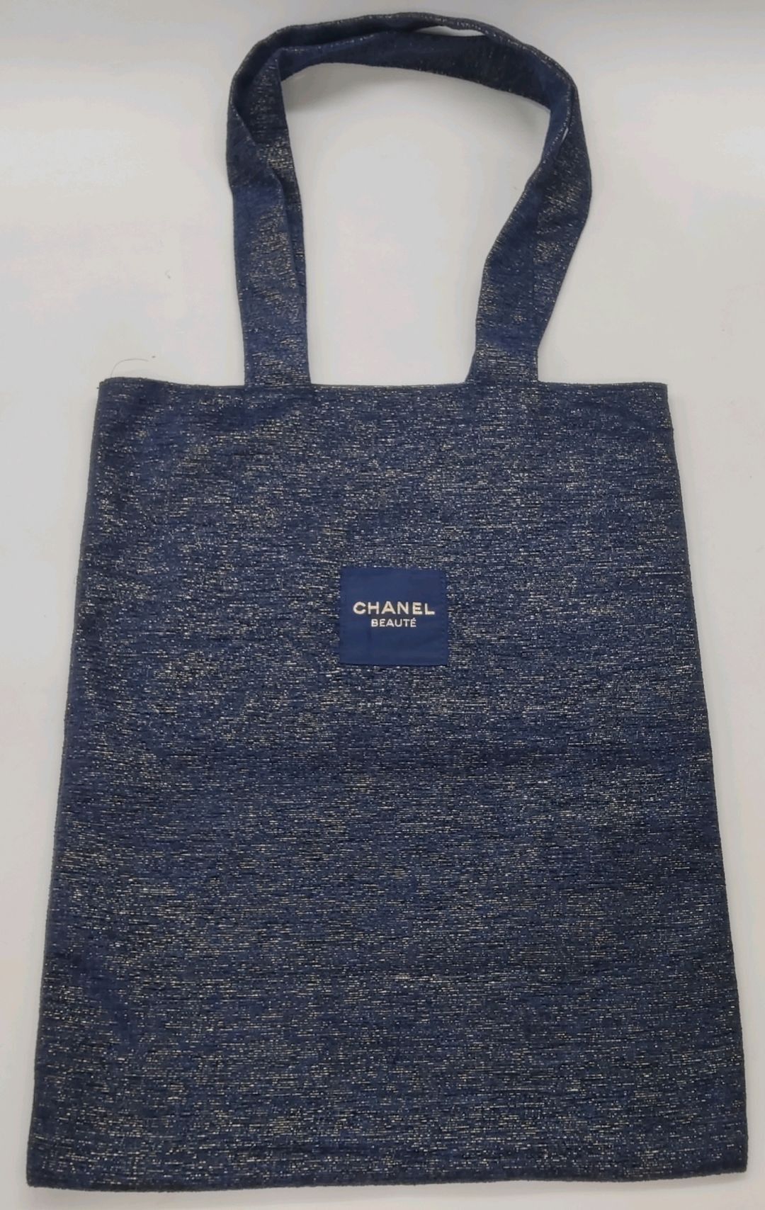 CHANEL BEAUTE. Tote bag in midnight blue velvet and gold lurex threads, H.43 x W.34 cm. Very good condition - This lot is available everywhere in mainland France from €12.24