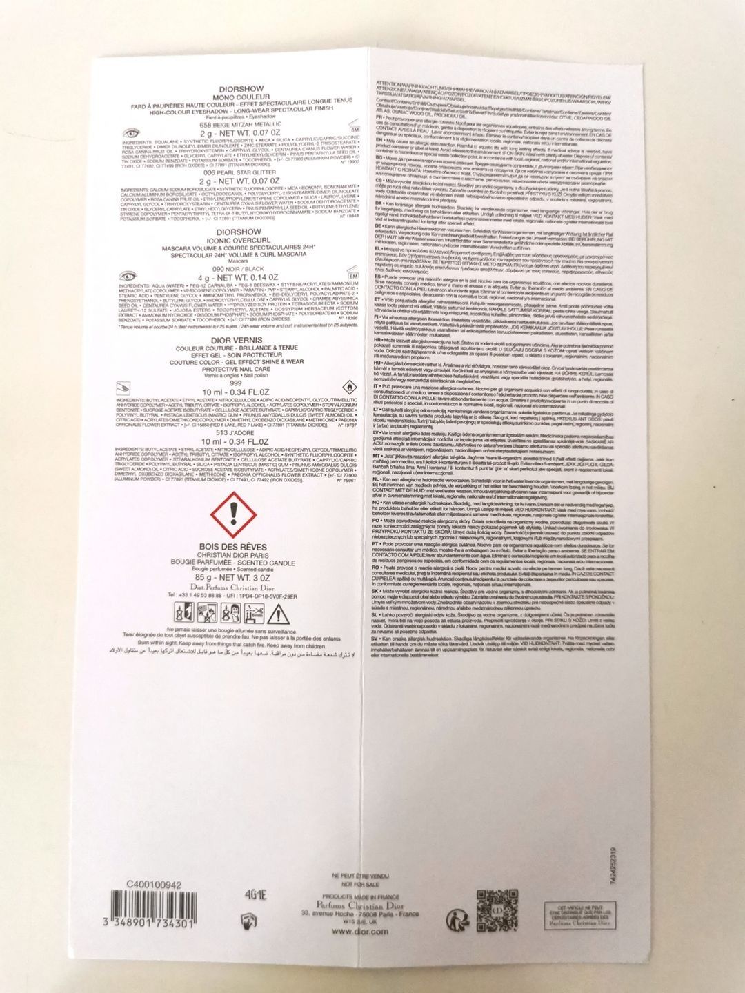 DIOR. Advent calendar containing perfume, skincare and make-up miniatures (lipsticks, mascara, eyeshadow, varnish), a "Bois des Rêves" scented candle. NEW, in a Dior dustbag and one of the brand's bags (slightly damaged) - This pack can be delivered anywhere in mainland France from €18.96.