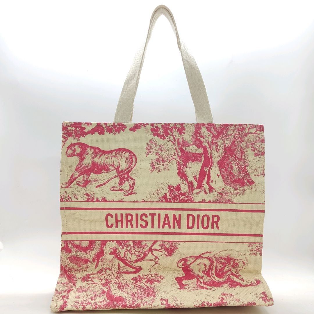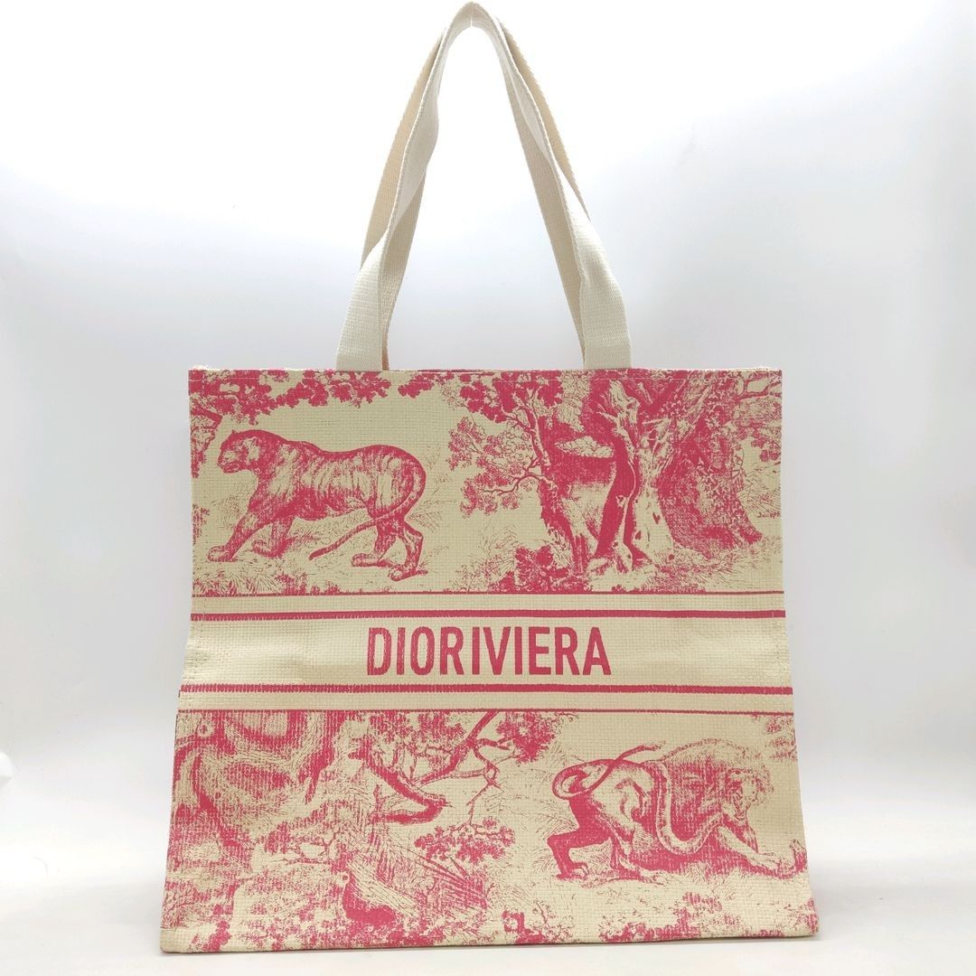 DIOR. Dioriviera" tote bag in beige straw with pink toile de jouy animal motif, H.37.5 x W.41 x D.15.5 cm. NEW - This pack is available everywhere in mainland France from €12.24.