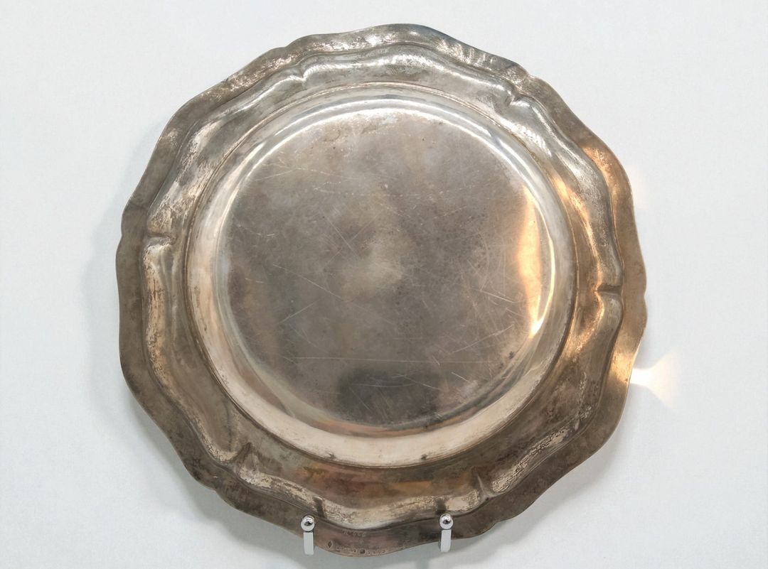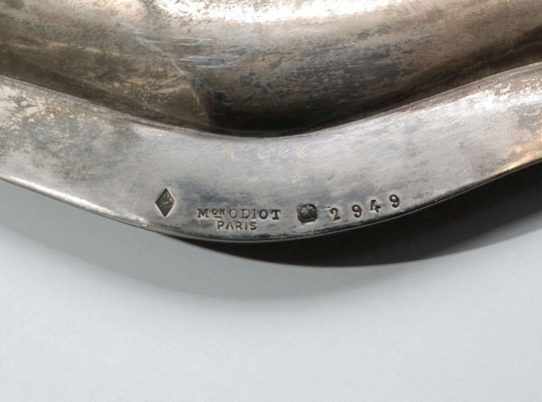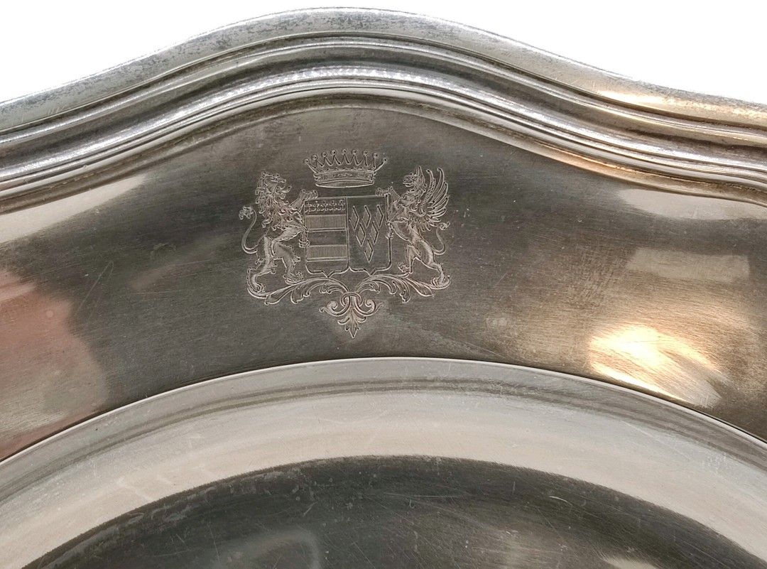 ODIOT in Paris. A round silver dish, with poly-lobed contours, double filets pattern and armorial wing. Weight : 860g. D 31cm. Minerva hallmark. - This lot available anywhere in France from €12.24 - This lot available anywhere in Europe from €18.00