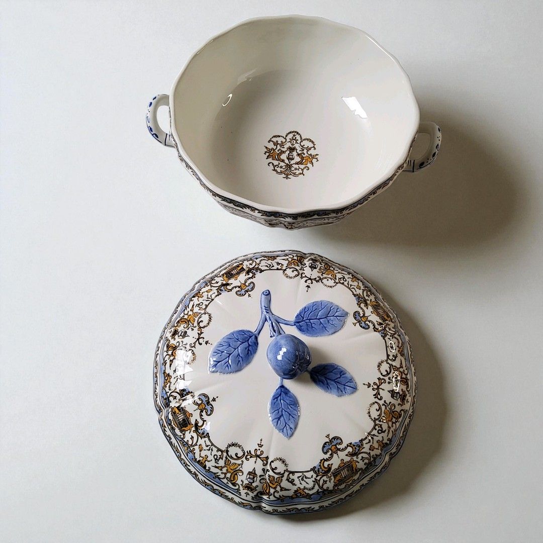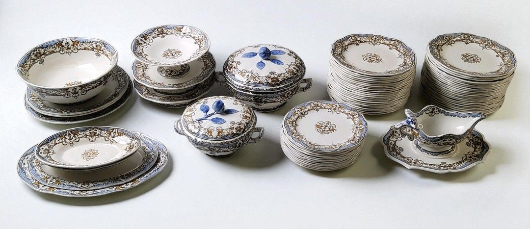 Premium GIEN. 73-piece earthenware dinner service with polychrome "D…