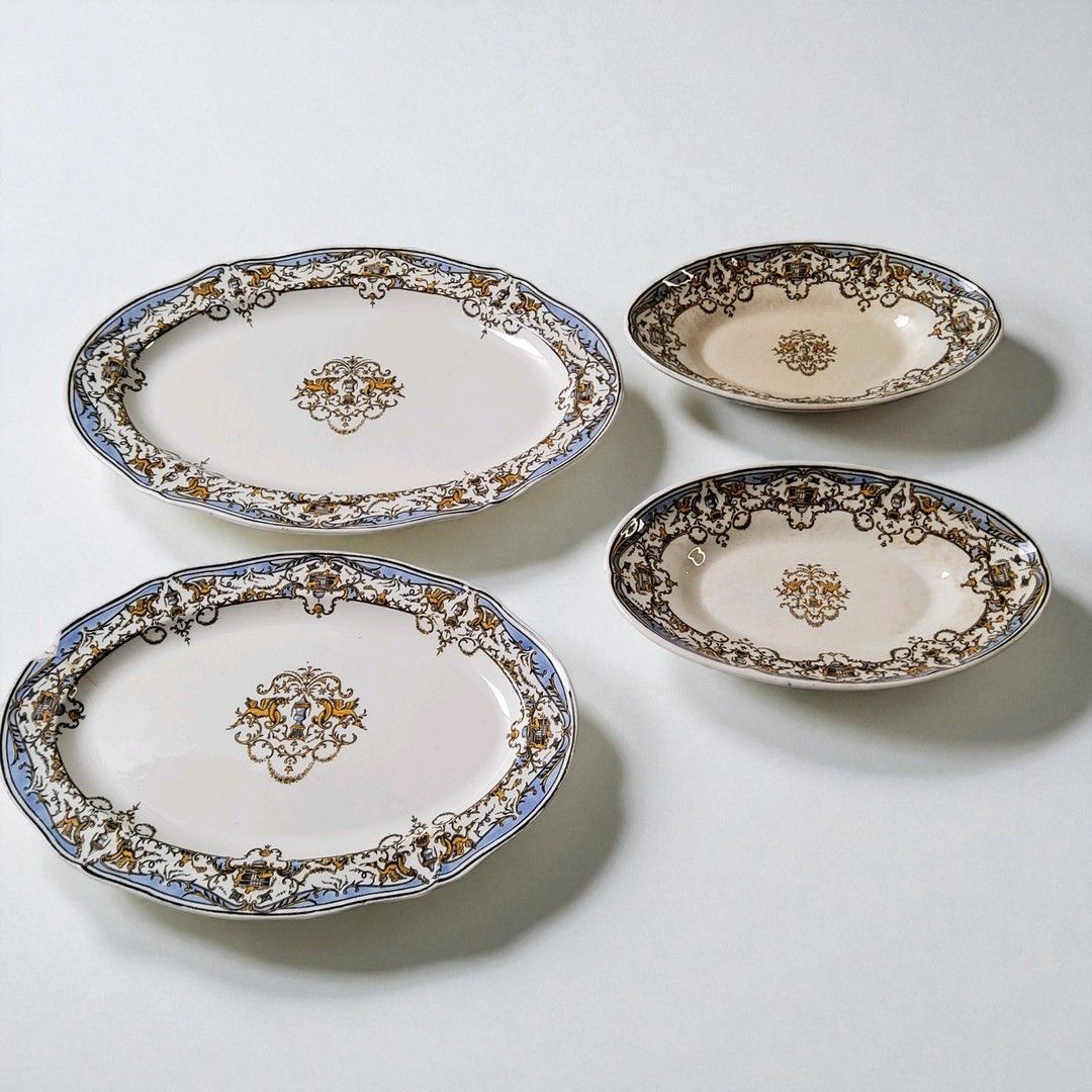 GIEN. 73-piece earthenware dinner service with polychrome "Dyonisos" model decoration on the theme of the grape harvest, comprising :