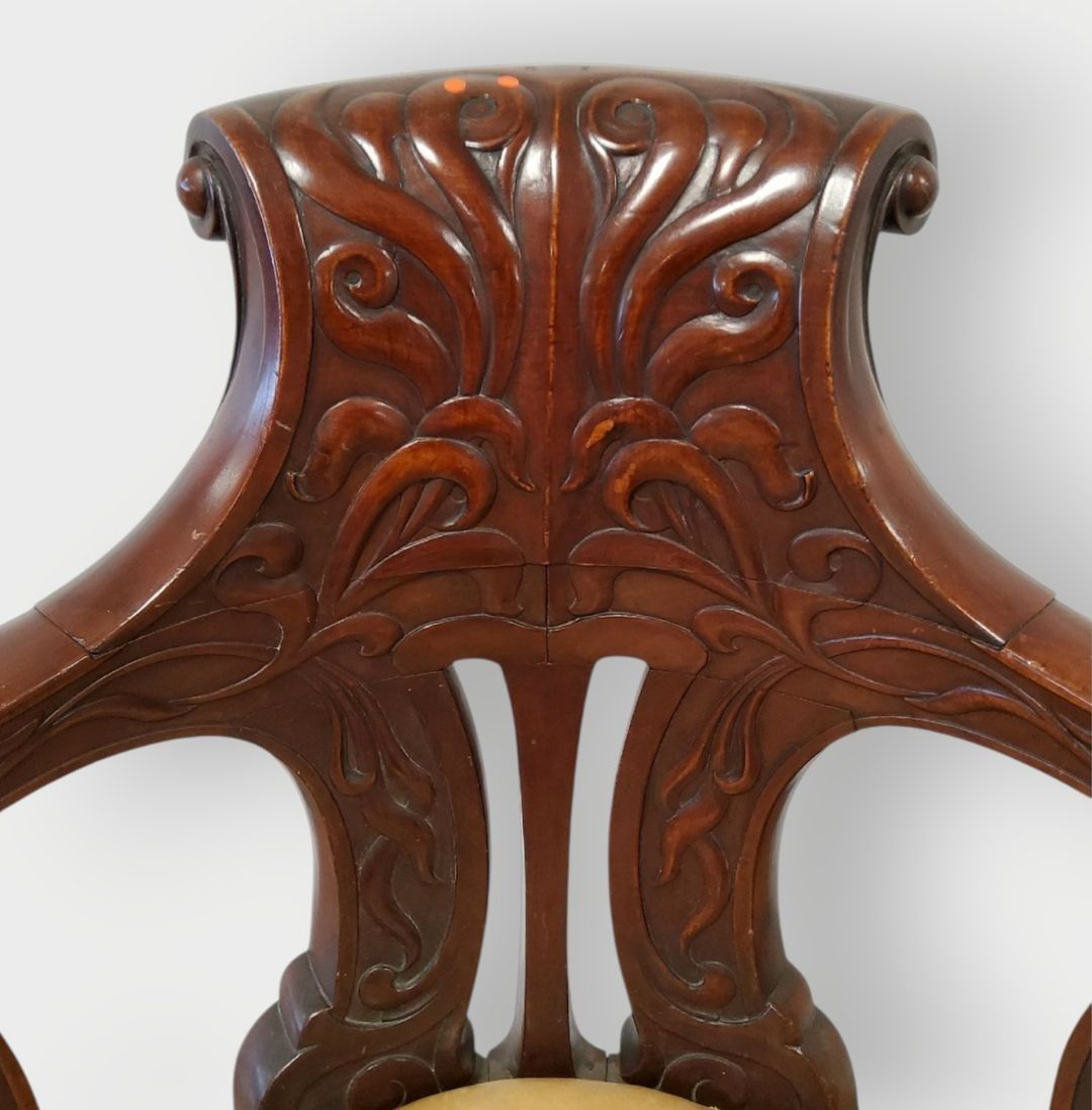Pair of swivel marine armchairs in turned, moulded and carve…
