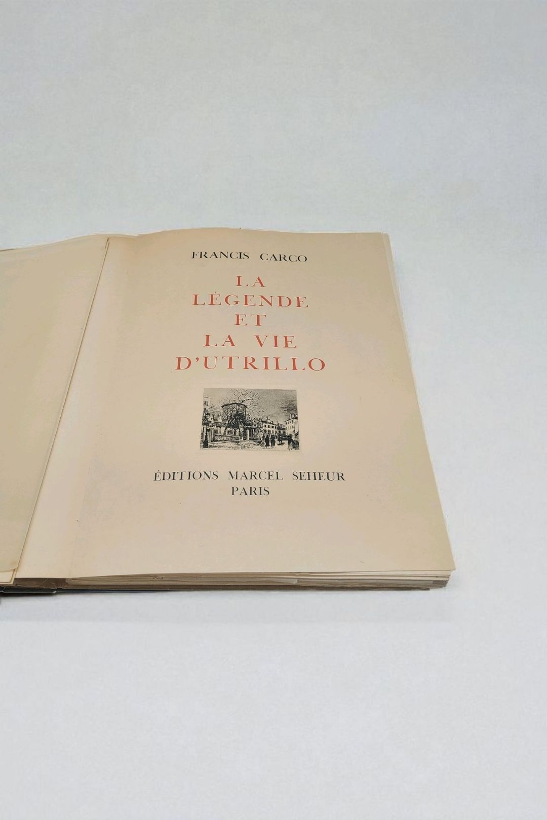 [CARCO. La Légende et la vie d'Utrillo, Paris, M. Seheur, 1927. First edition with a portrait of Utrillo by Suzanne Valadon and 11 original off-text lithographs by Maurice Utrillo, including one in colour. Edition of 100 copies: one of 95 on Japon (No. 48), with a suite of 12 lithographs on China paper + a second suite of 11 lithographs (without the frontispiece) on vellum, and a suite of 10 crossed-out lithographs in black, printed on Japon. Good condition inside, box damaged - This lot available anywhere in France from €15.72 - This lot available anywhere in Europe from €30.00