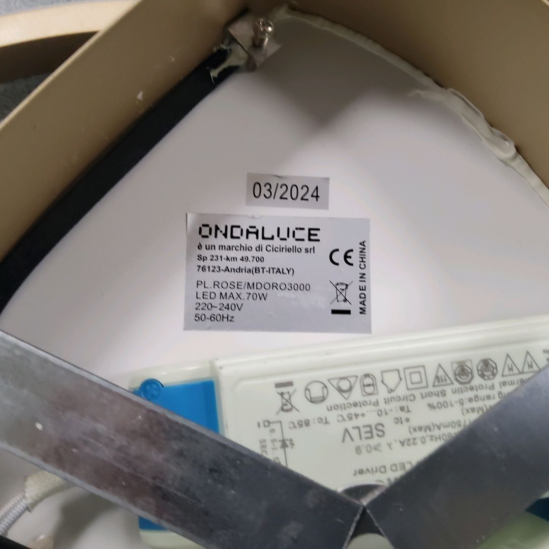 ONDALUCE. PL.ROSE/MDORO3000 gilded metal ceiling light. New, unsealed for photographic purposes. L.64 x W.64 x H.7 cm. - Recoverable VAT - This lot available anywhere in mainland France from €18.96 - This lot available anywhere in Europe from €34.44