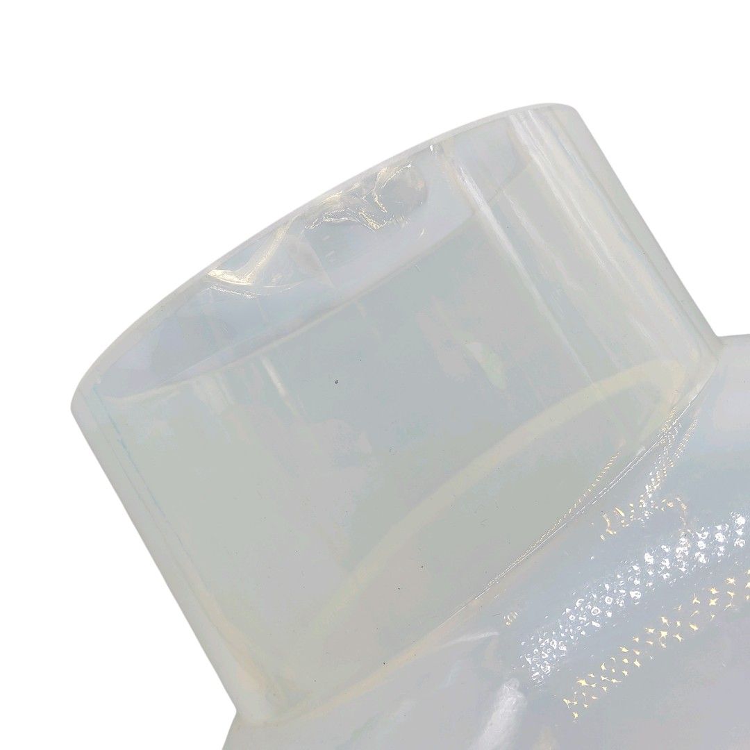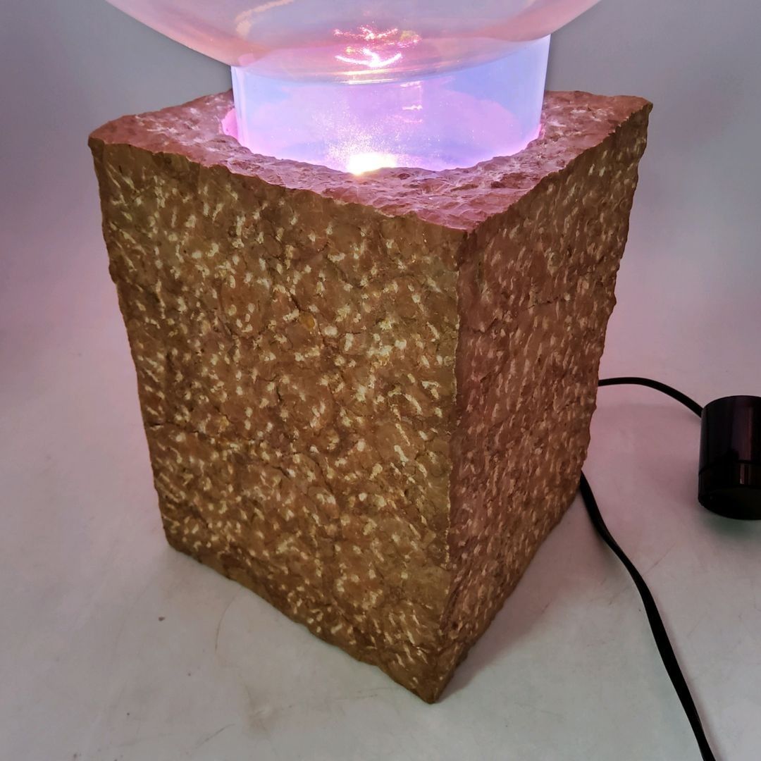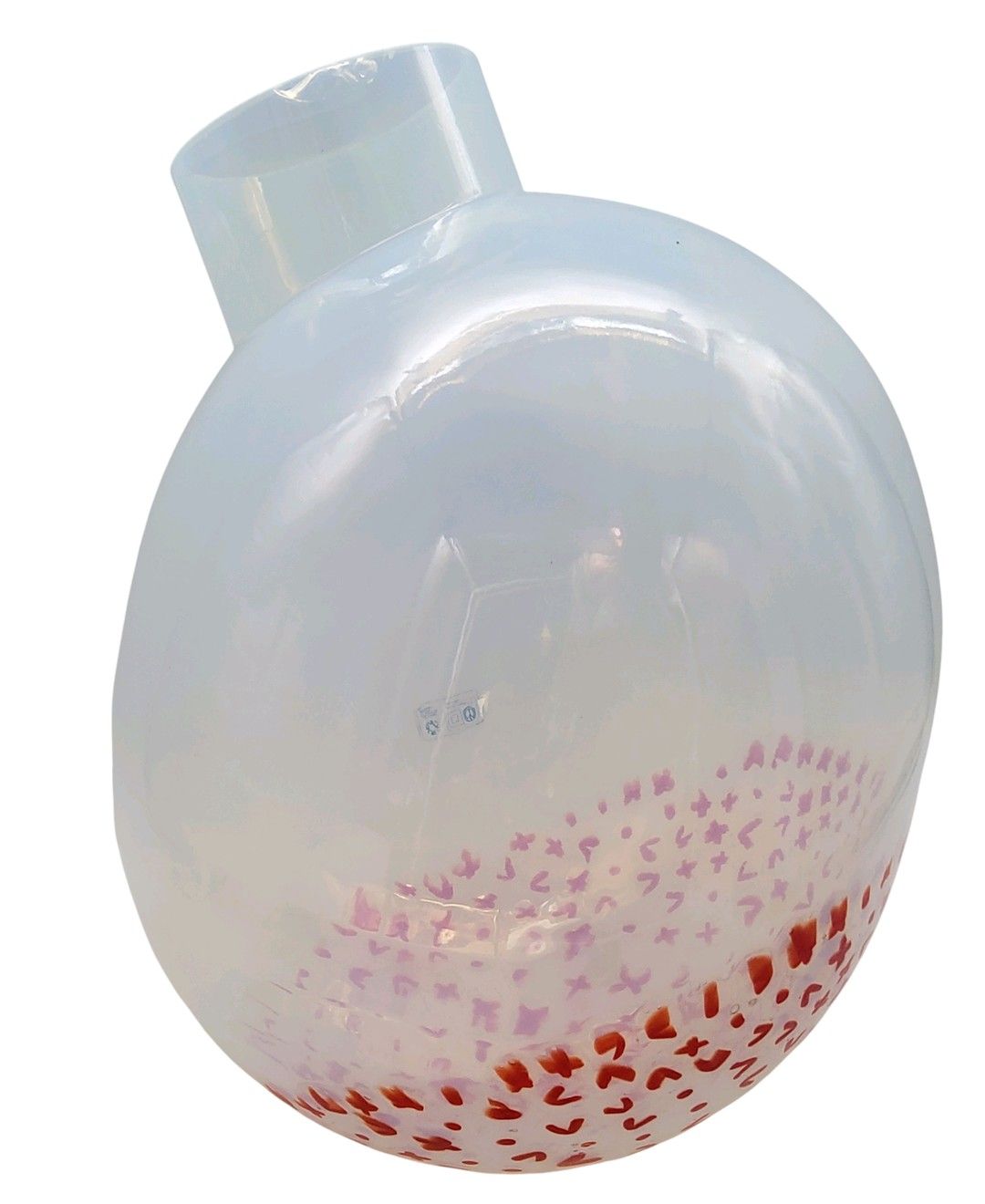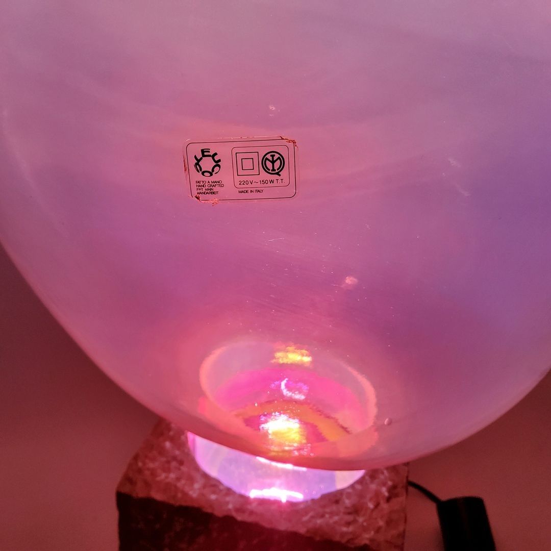 PAMIO Roberto & TOSO Renato for Leucos, 1960s. Moulded blown opalescent glass table lamp with red enamel decoration, the base in Verona marble. Accident to the base of the glass. With dimmer switch. Total height: 55 cm. - Can be shipped on pallet