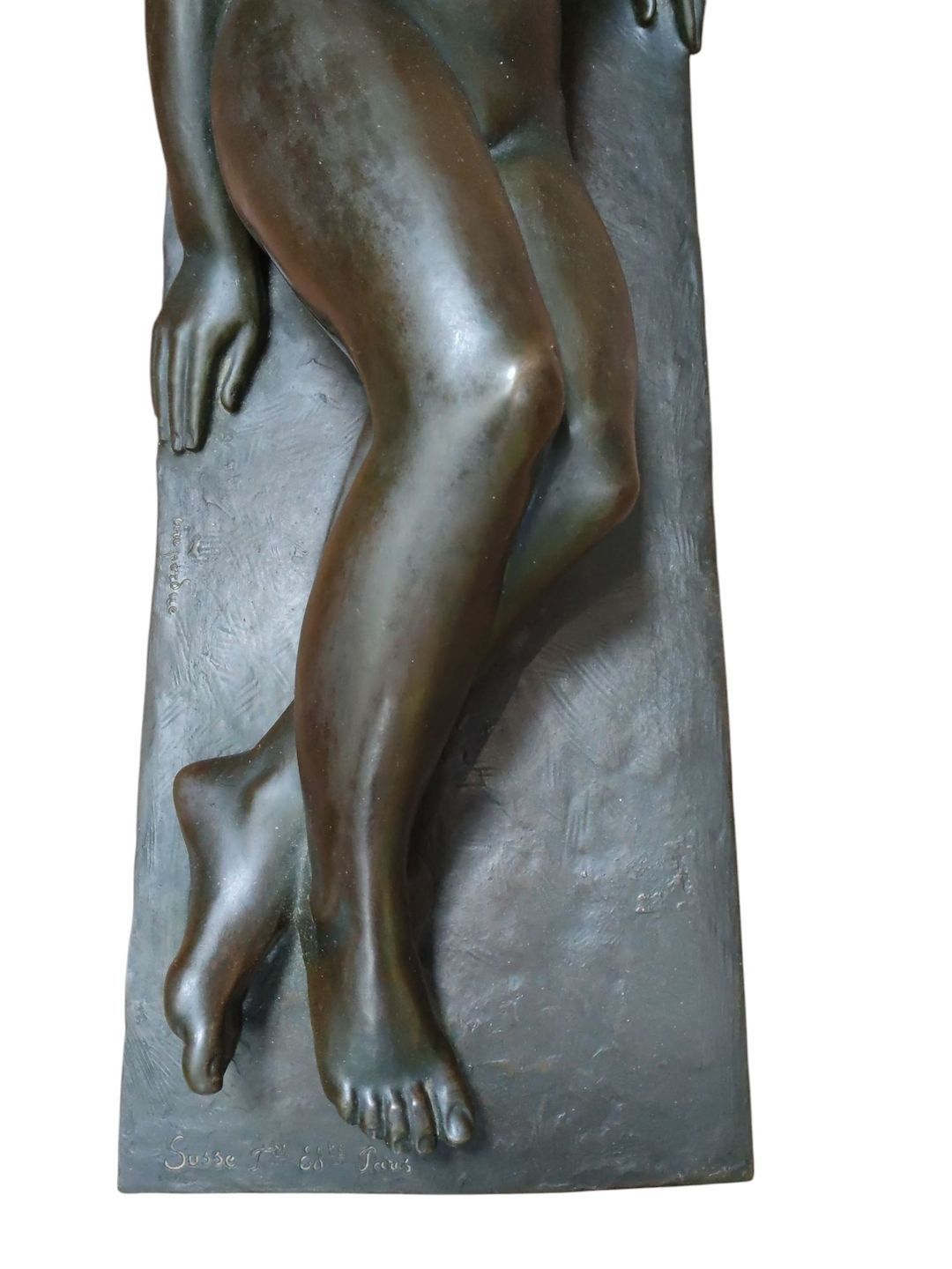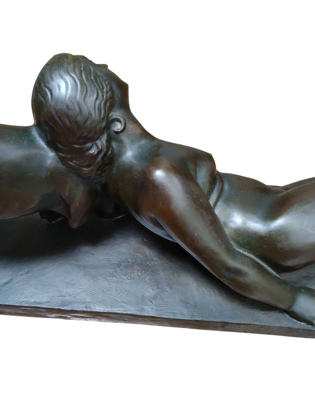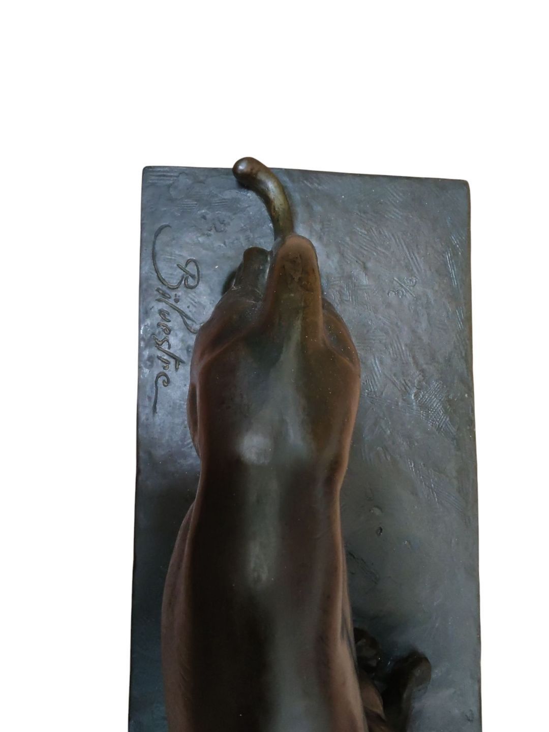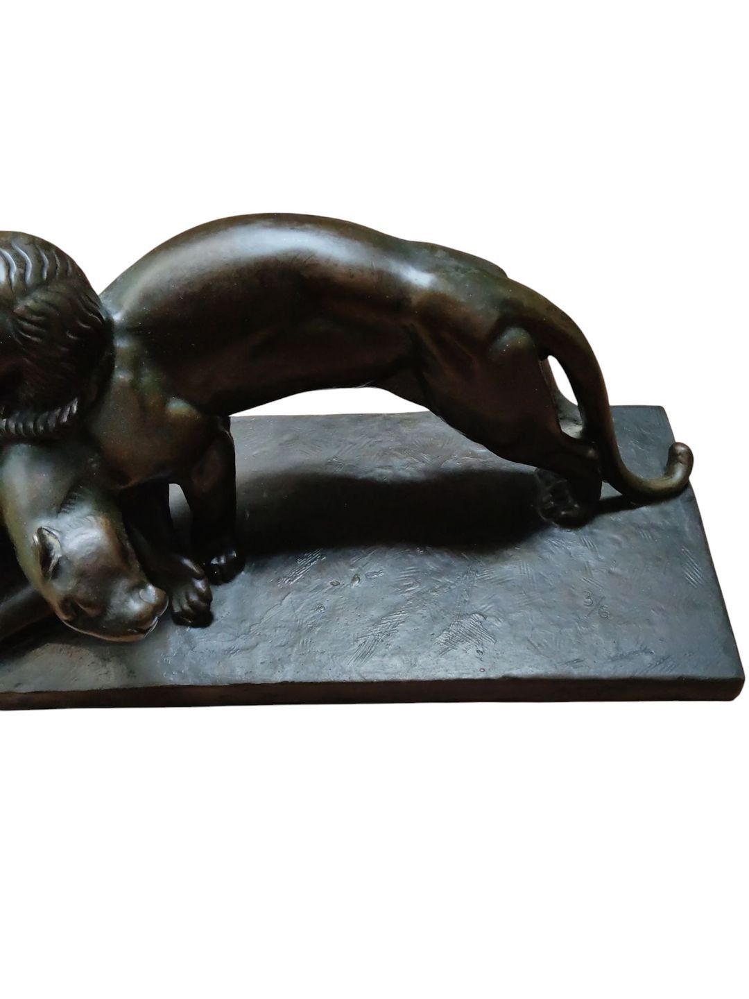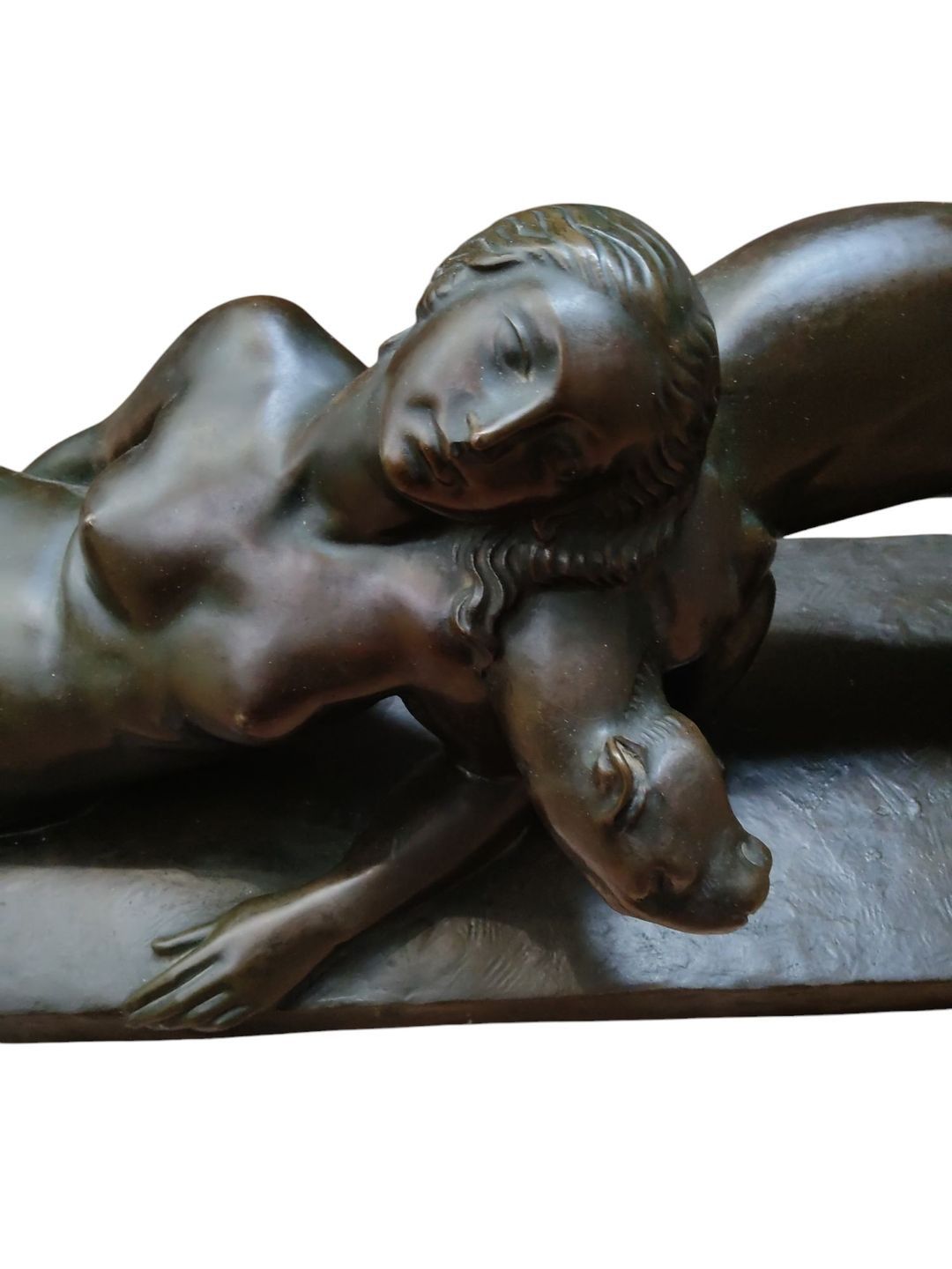 Bronze group with brown patina representing a woman languishing next to a panther.