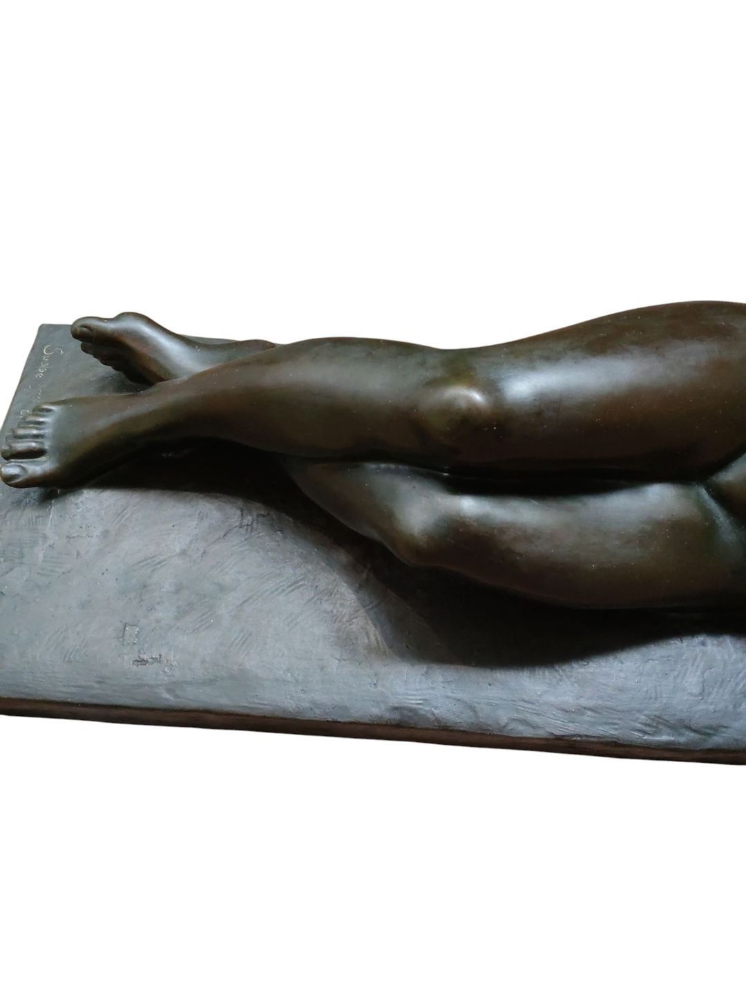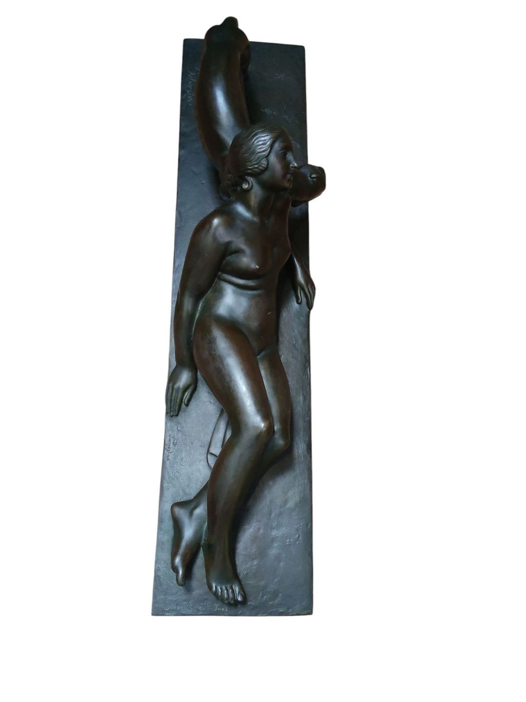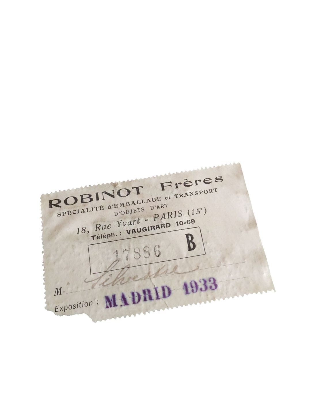 A shipping label under the bronze indicates an exhibition in Madrid in 1933.