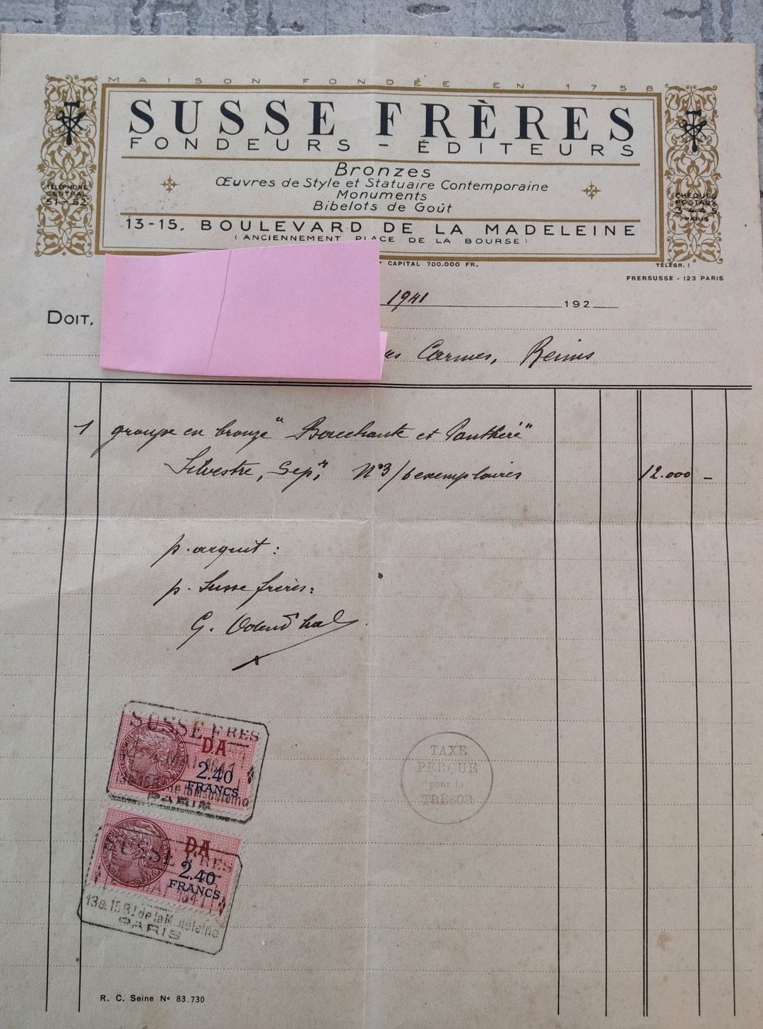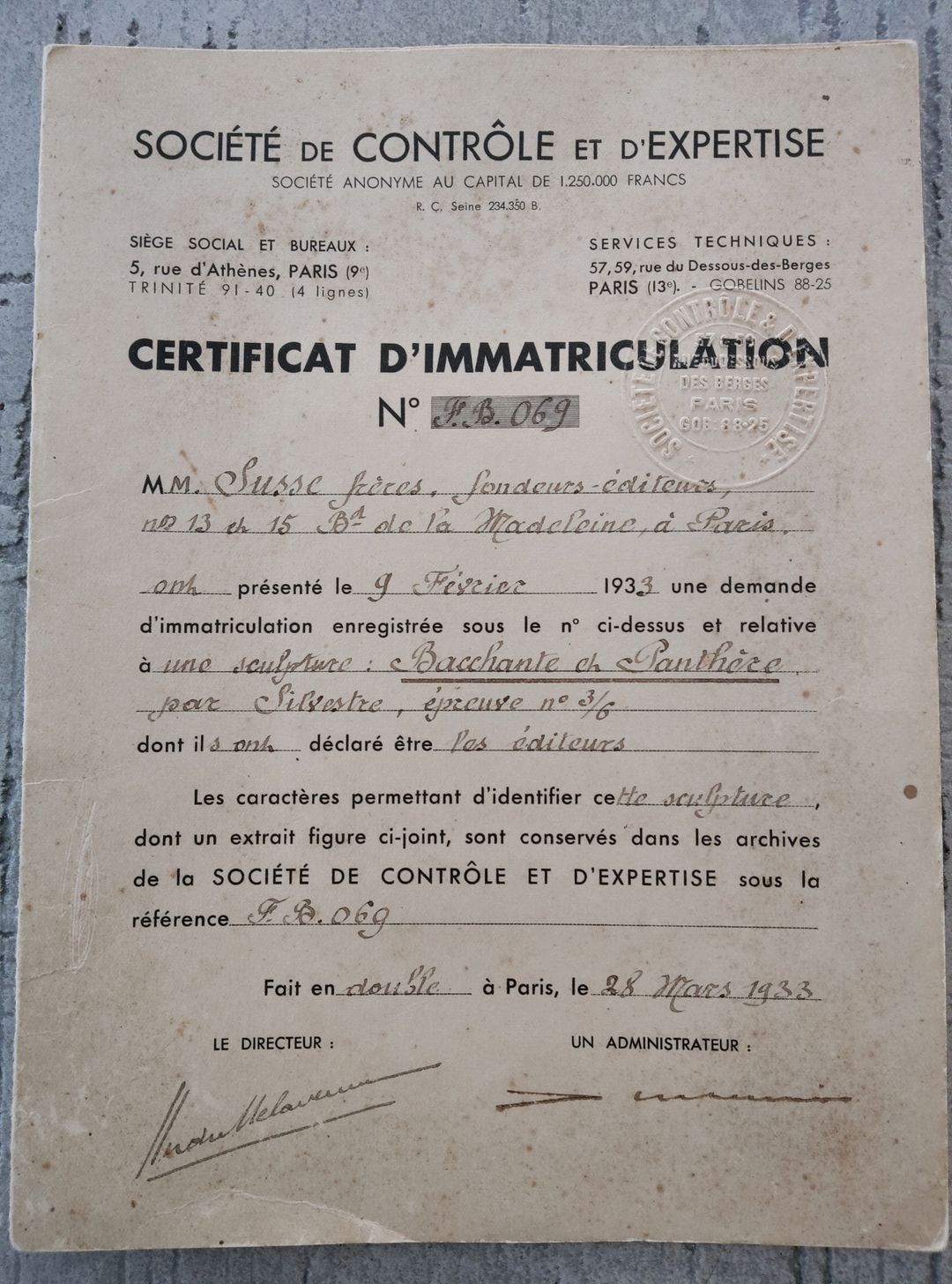 Attached is the certificate of appraisal dated 9 February 1933, including three photographs, as well as the invoice from Susses frères dated 1841.