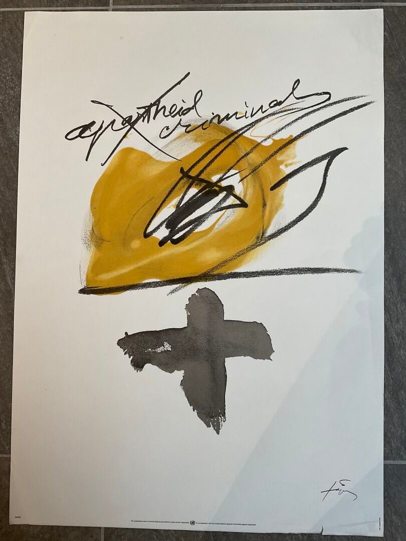 - Apartheid criminal", after TAPIES Antoni (1923-2012), printed by Imp. Lafayette, Paris. Signed in the plate.