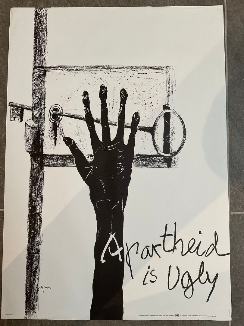 - "Apartheid is ugly" after REBEYROLLE Paul (1926-2005), printed by Imp. Lafayette, Paris. Signed in the plate.